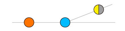 満月がふだん月食にならないのは,太陽・地球・満月のつぎの位置関係が理由である: