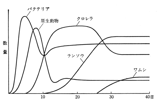 そしてこれが,フラスコの中に「遷移する生態系」を現す: