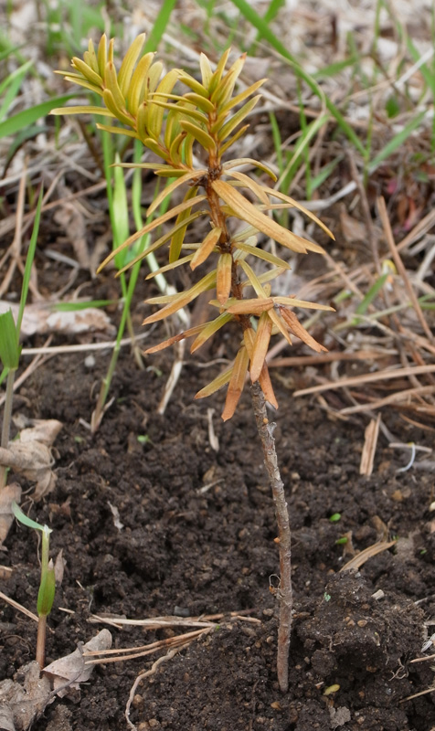 冬季は葉が茶色 (枯れ葉色) だったのが,徐々に緑色がさしてきた
