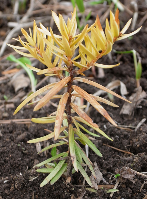 冬季は葉が茶色 (枯れ葉色) だったのが,徐々に緑色がさしてきた
