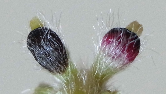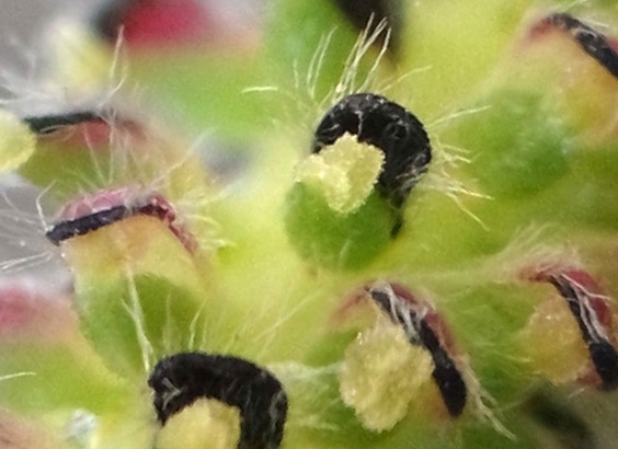 苞の色が,最初の赤からやがて黒に変化