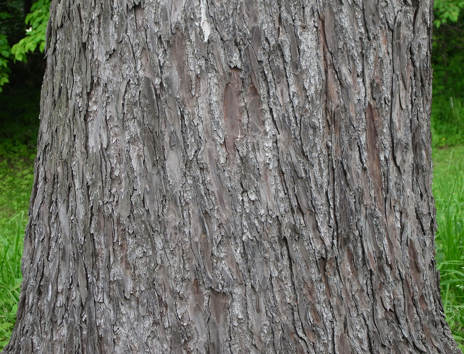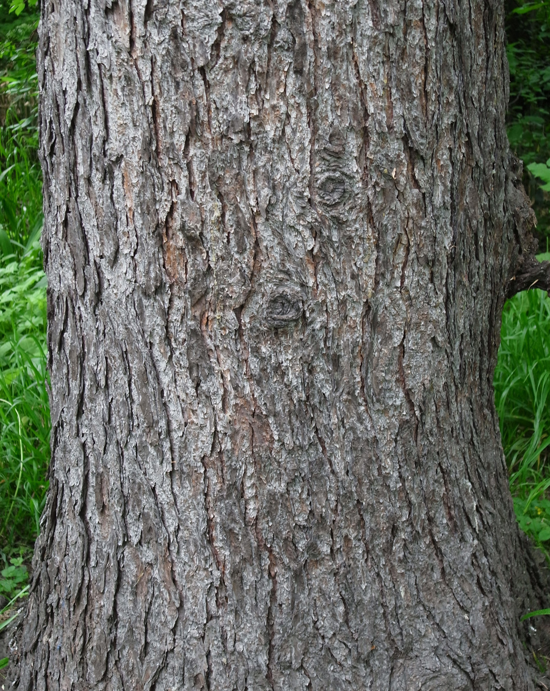 「グイマツは葉が短く球果も小さく,当年枝が有毛(カラマツは無毛)で,種鱗は無毛,苞鱗はあまり外にそりかえらない。枝も水平かやや垂れ下がる。」(『北海道樹木図鑑』(佐藤孝夫, 亜璃西社) )