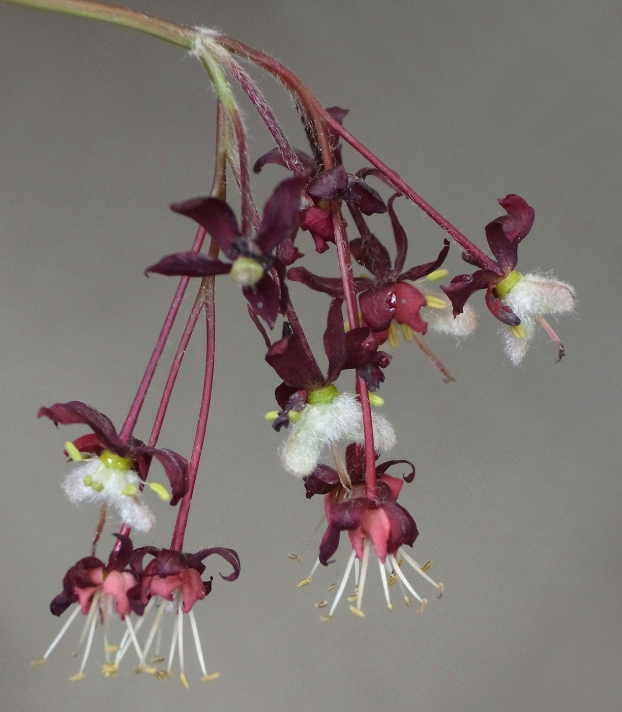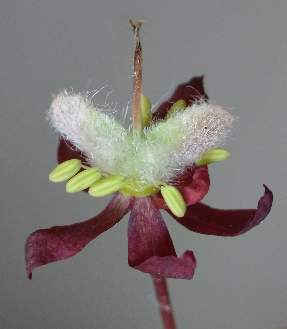 雌花 : 短い花糸をもつ雄しべが8本と,雌しべがある