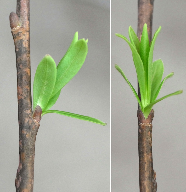 (室内水挿し → すぐに芽吹き進行)