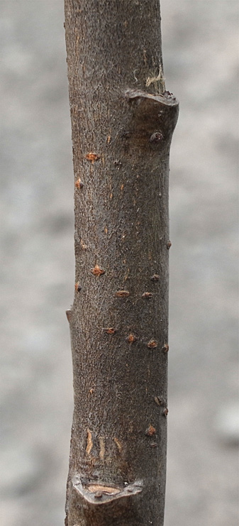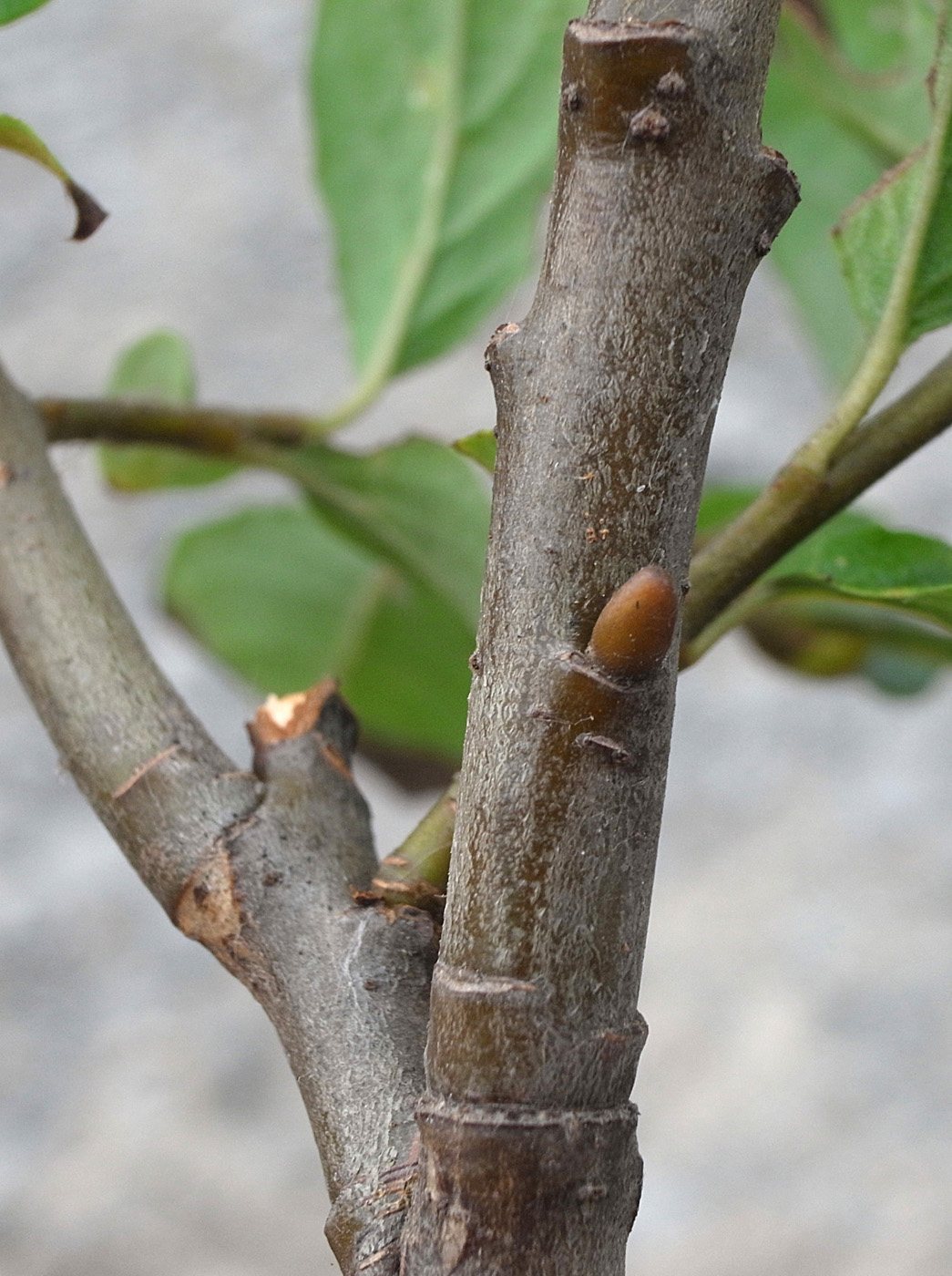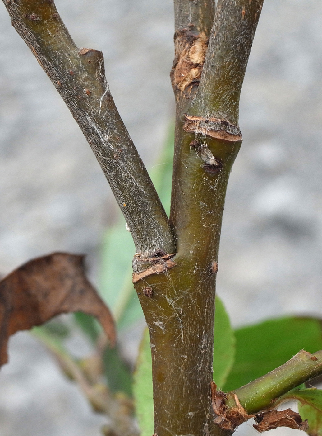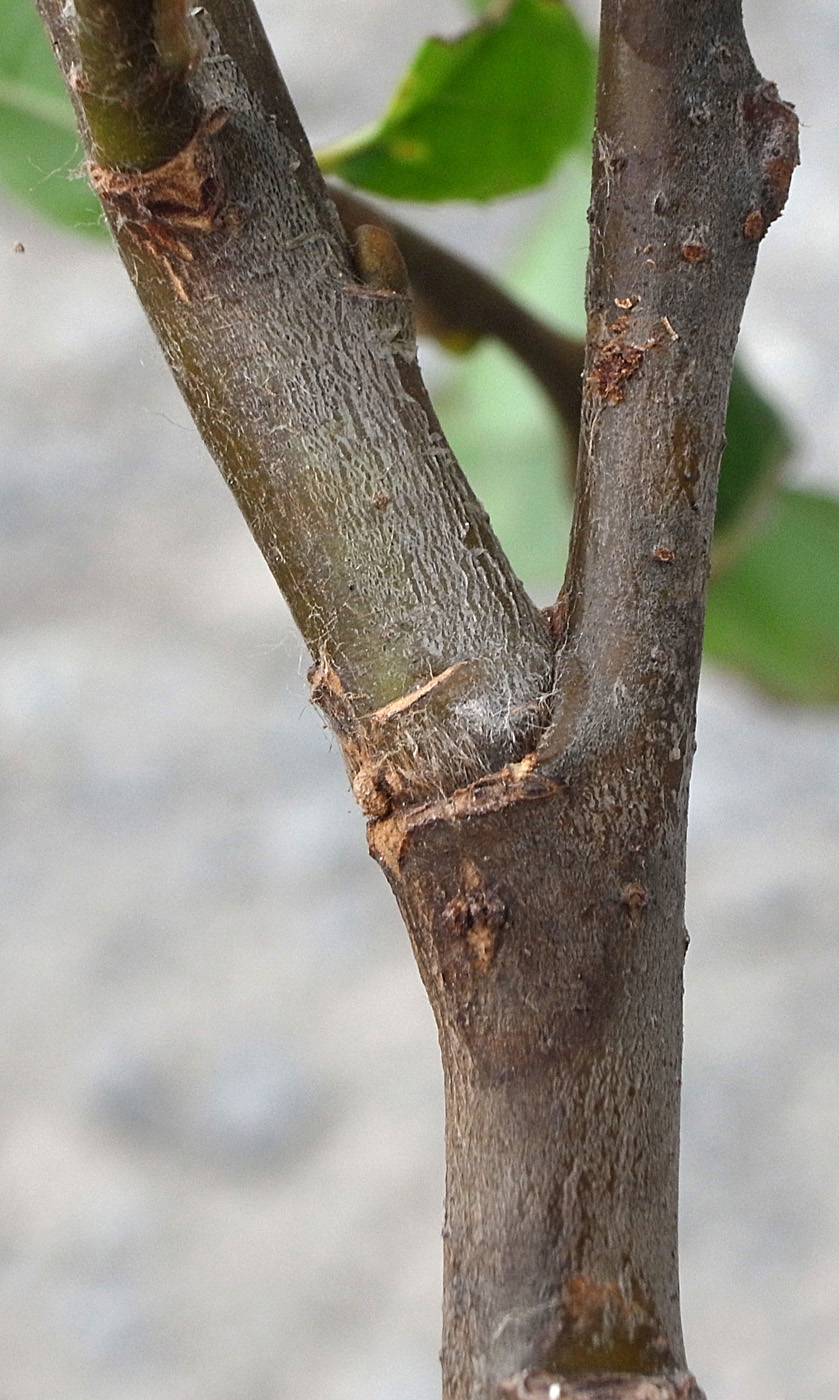 2本の当年枝がくっつき,上部で分かれる形になっている