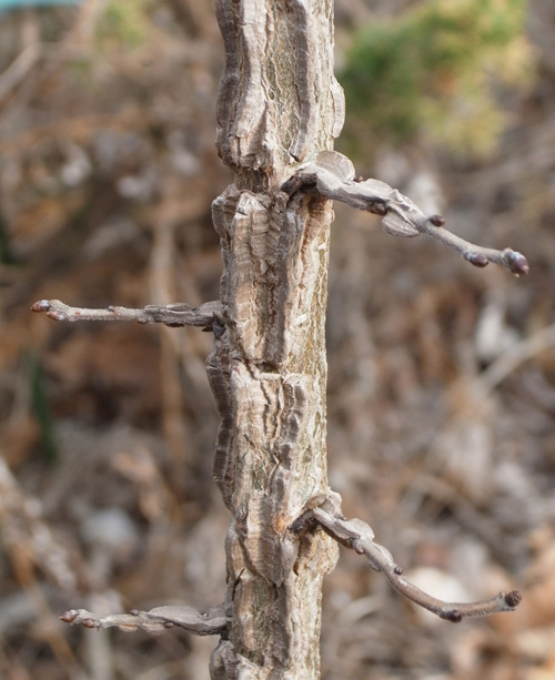 アスファルト道路と塀の間に生えてきたのを,翌年かそのつぎの年に,庭に移植。