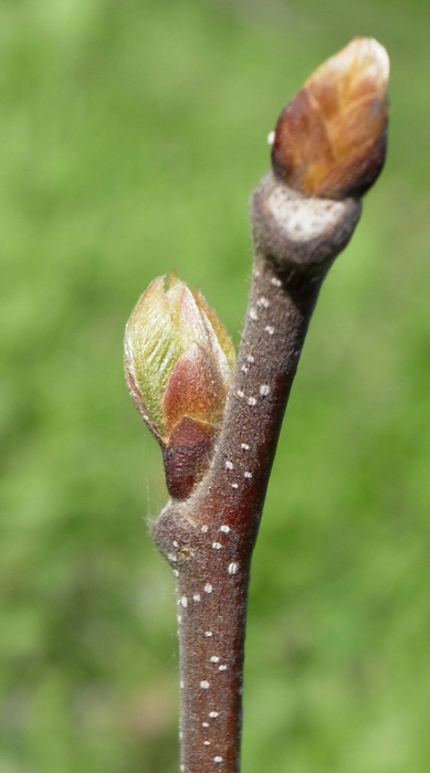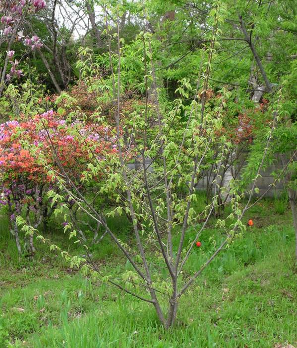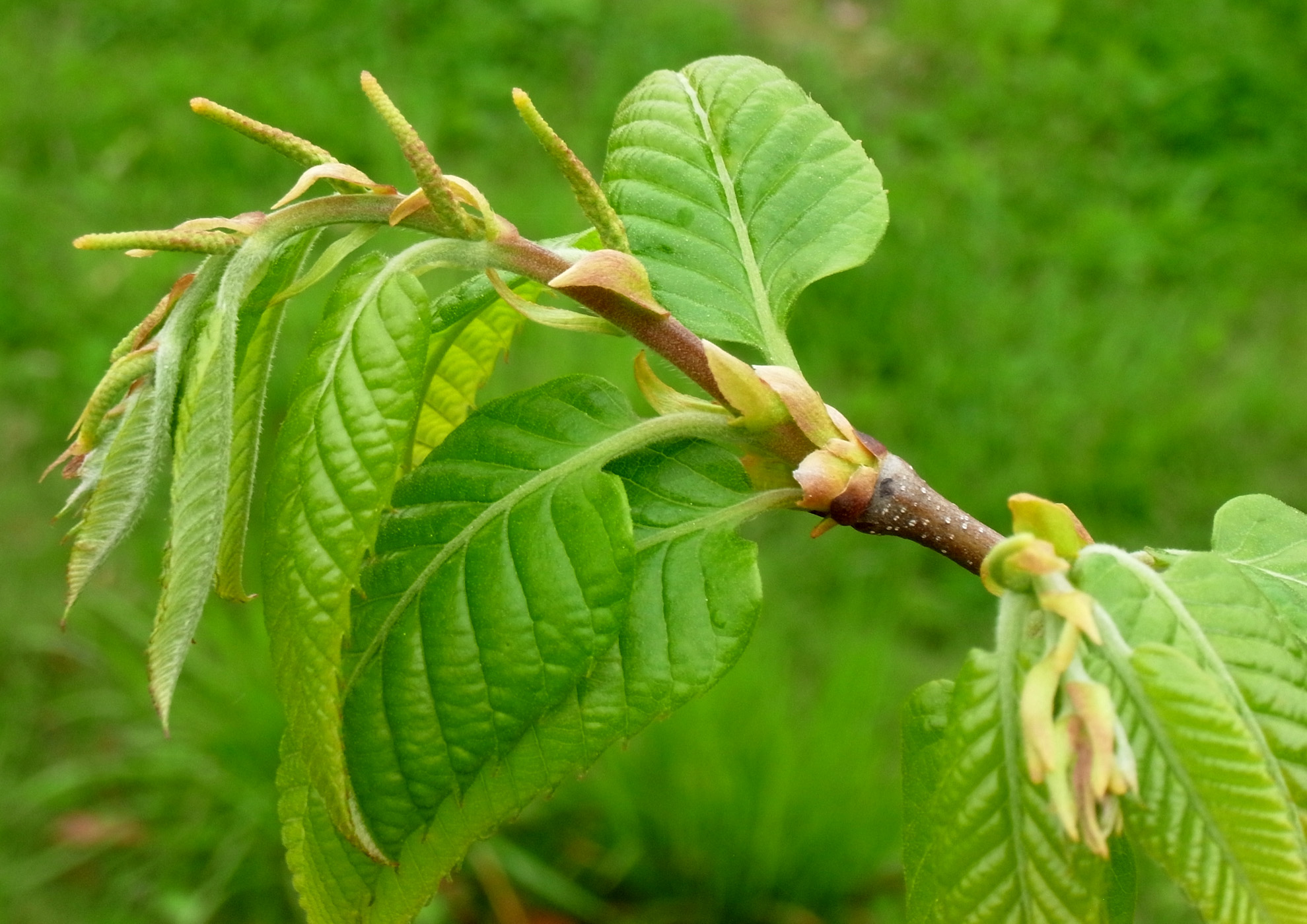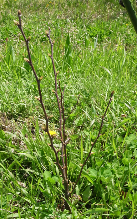 芽吹き後伸び始めた若枝は,ほとんどが花をつけている。