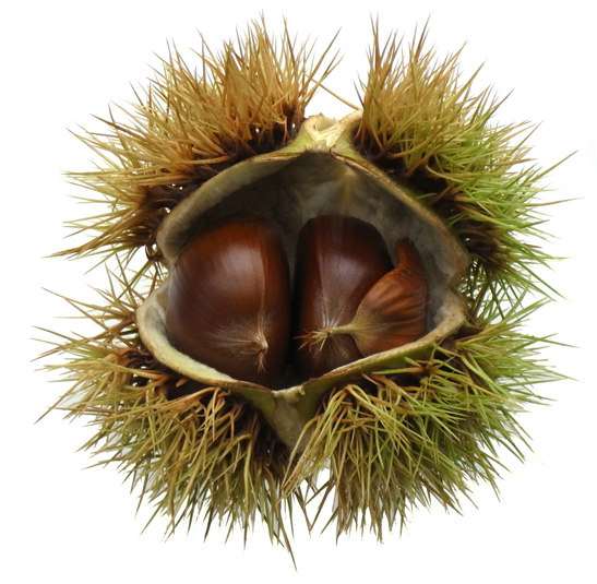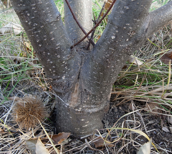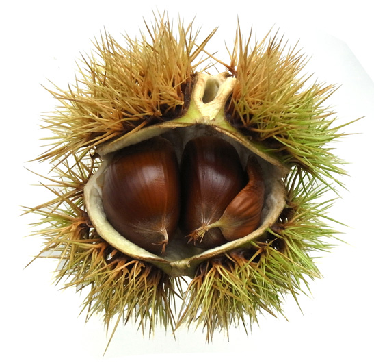 この殻斗は,横方向が完全に割れて,縦方向が途中という段階。