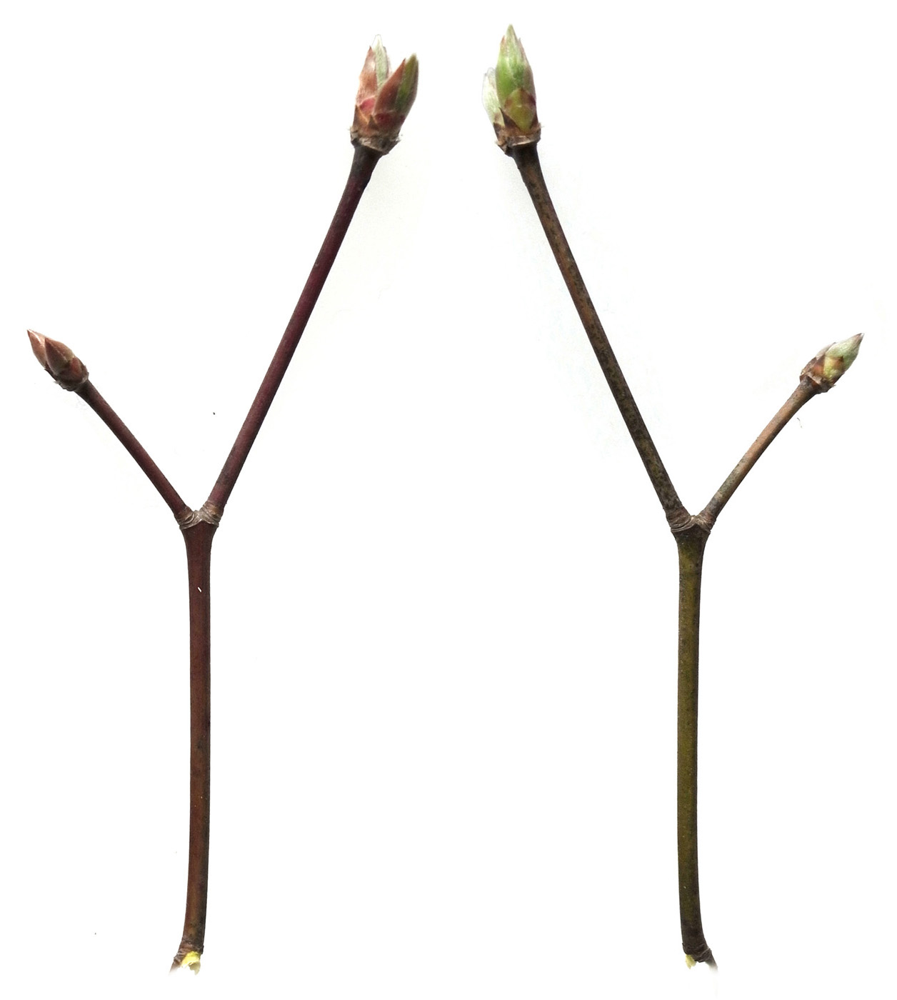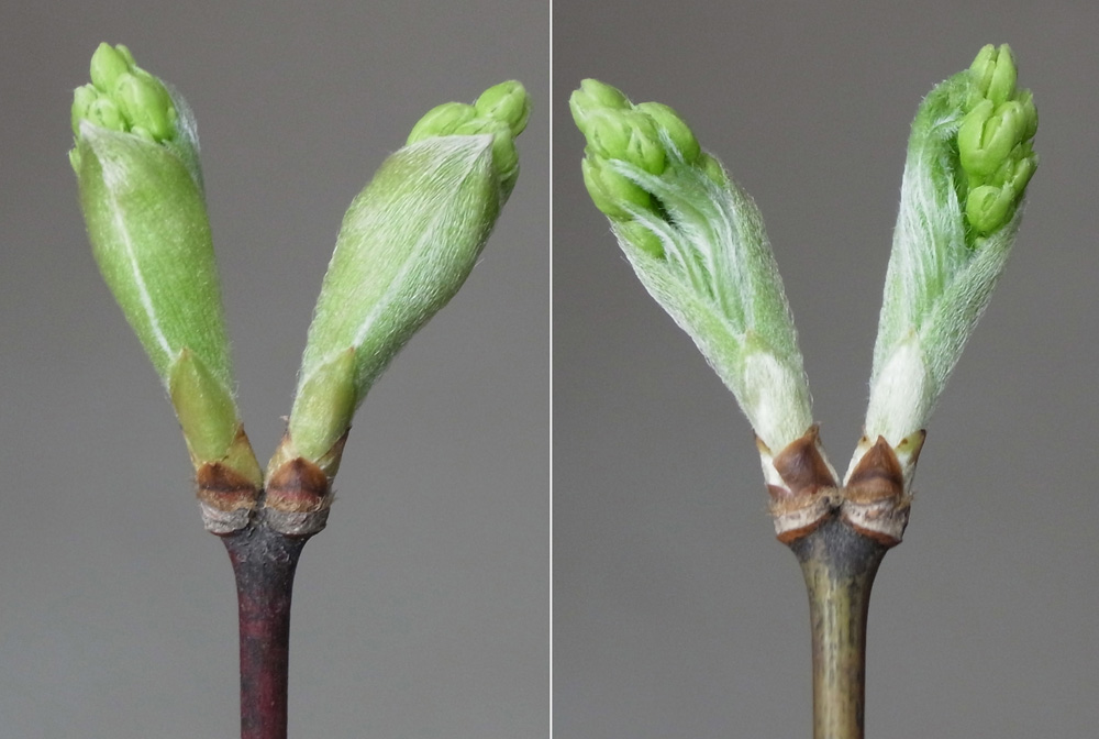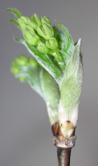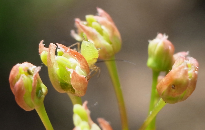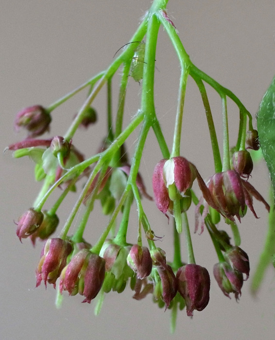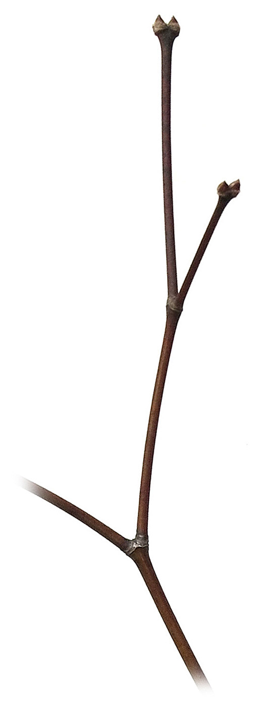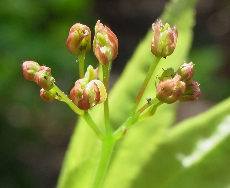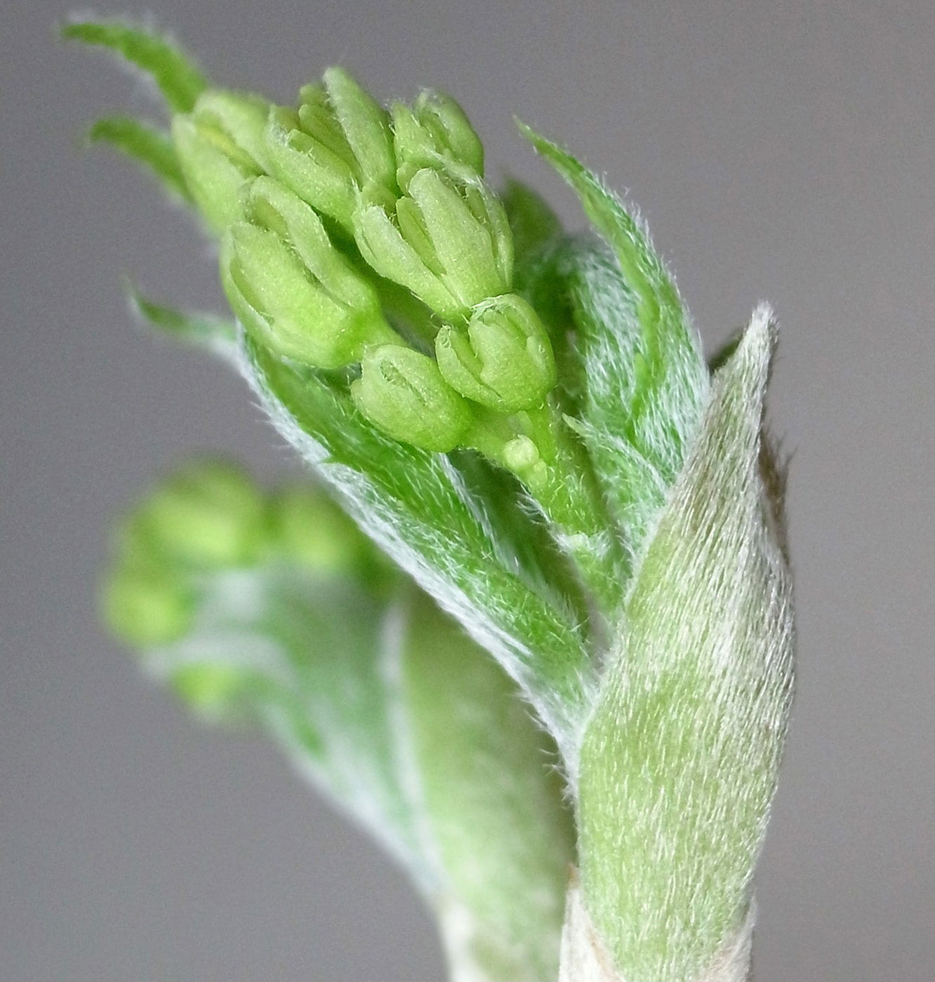 雌花 : 短い花糸をもつ雄しべが8本と,雌しべがある