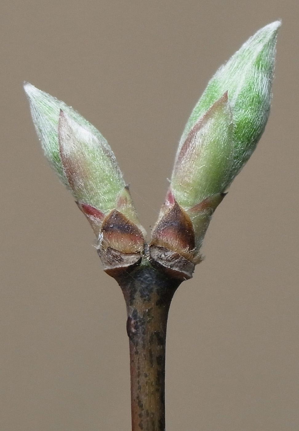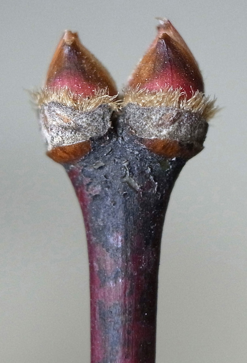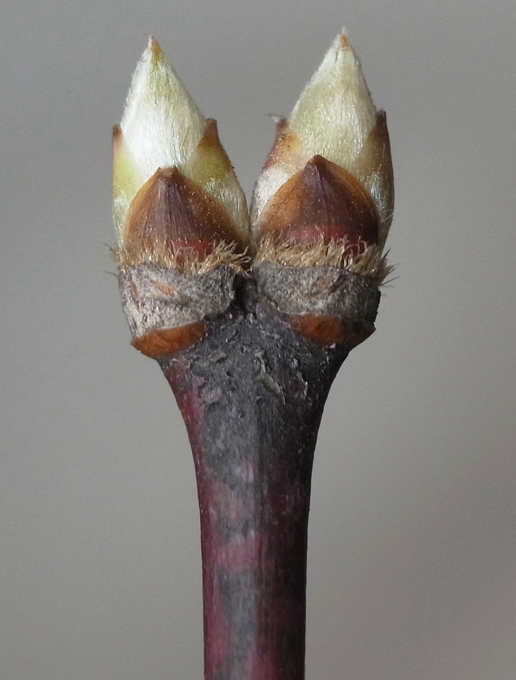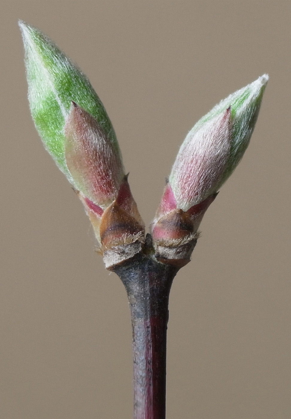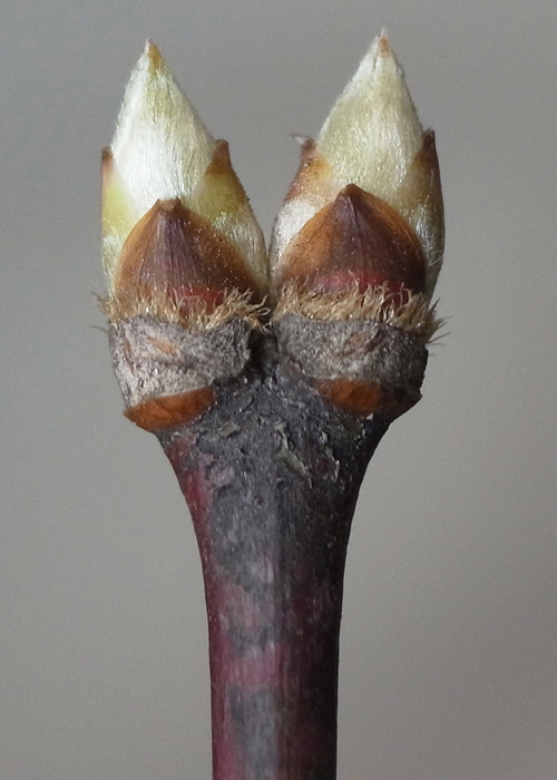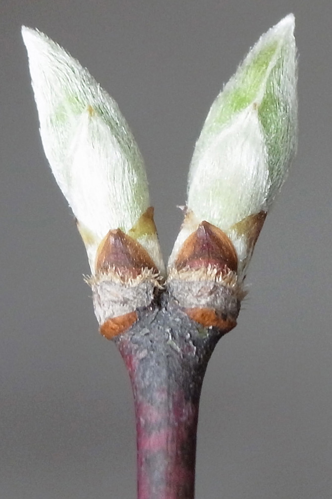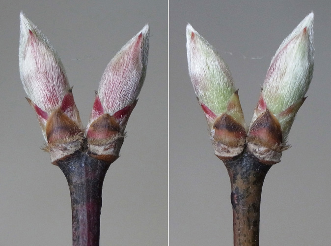 雌花 : 短い花糸をもつ雄しべが8本と,雌しべがある