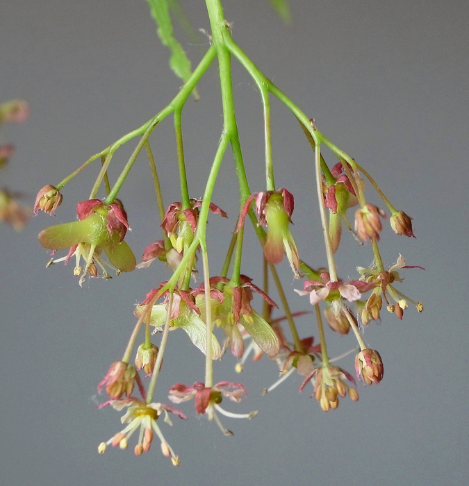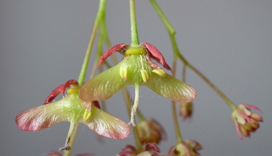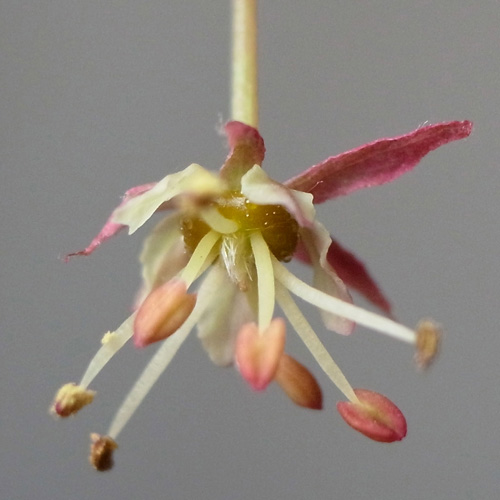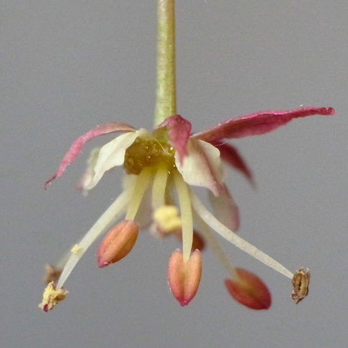 雄花 : 長い花糸をもつ雄しべが8本あり,雌しべがない