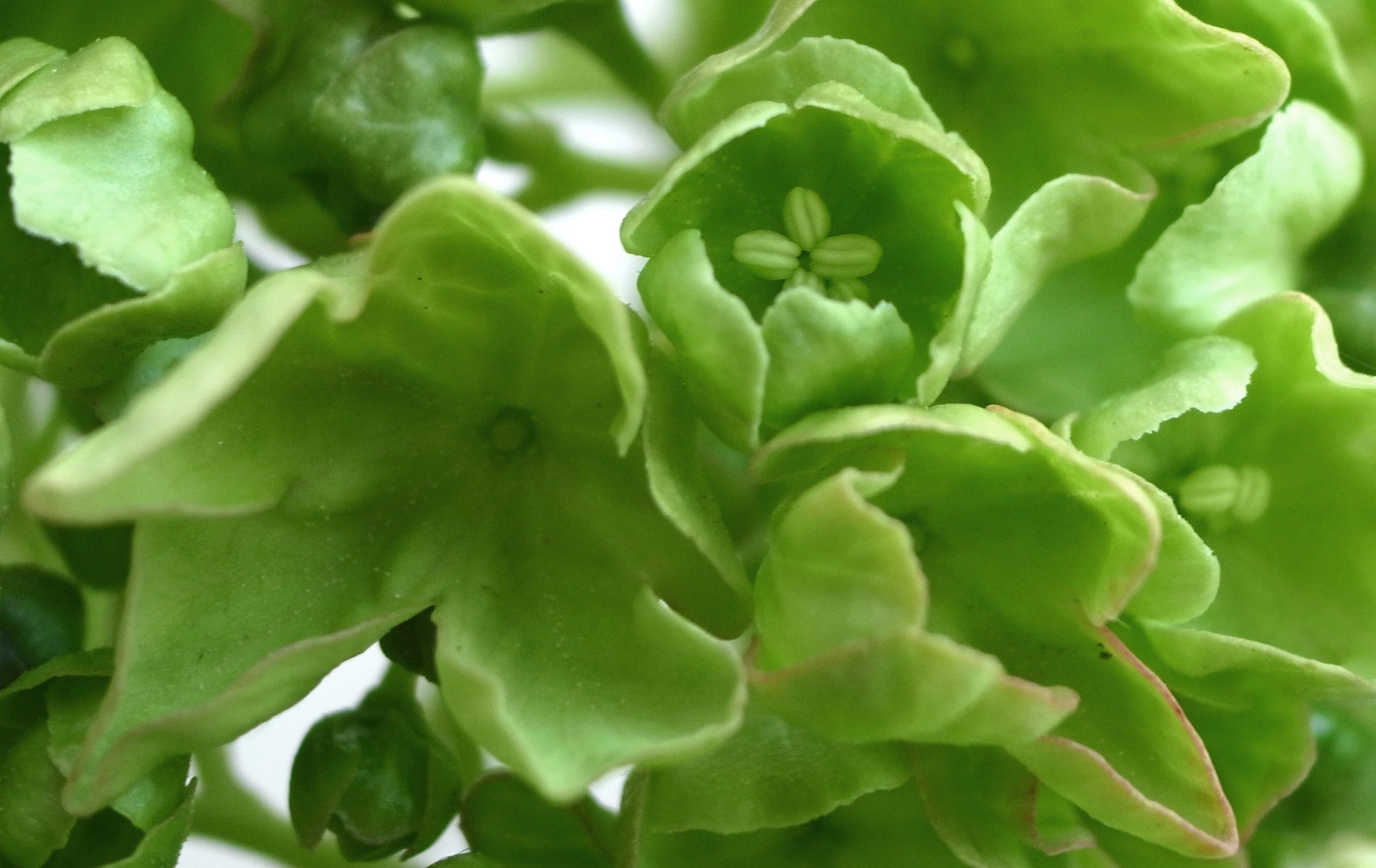 花の色が,はじめの緑からだんだんと白に変化する。