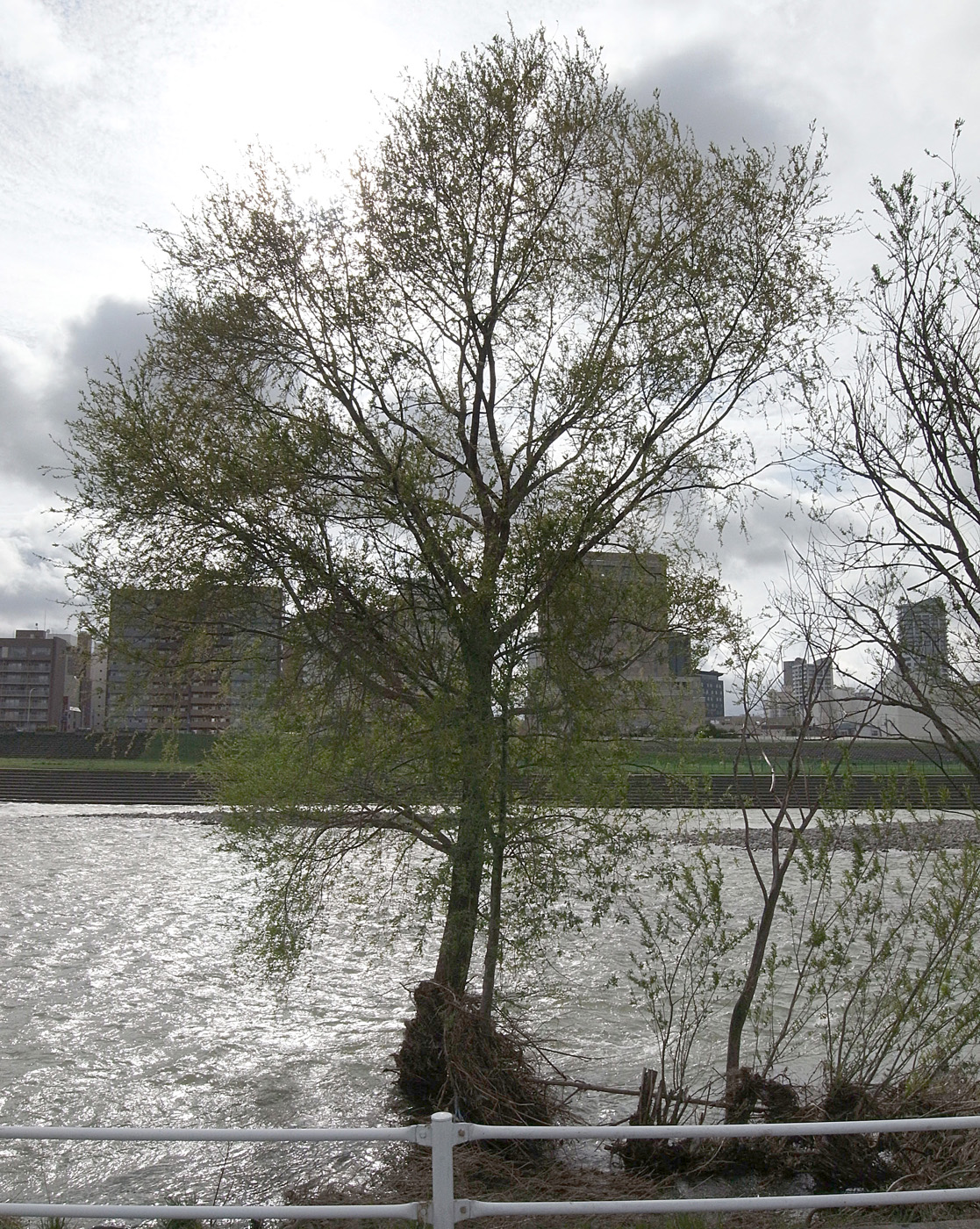 (大きなシロヤナギの幹のすぐ右隣り)