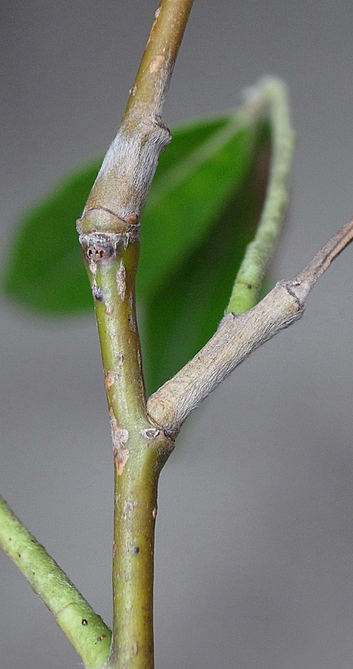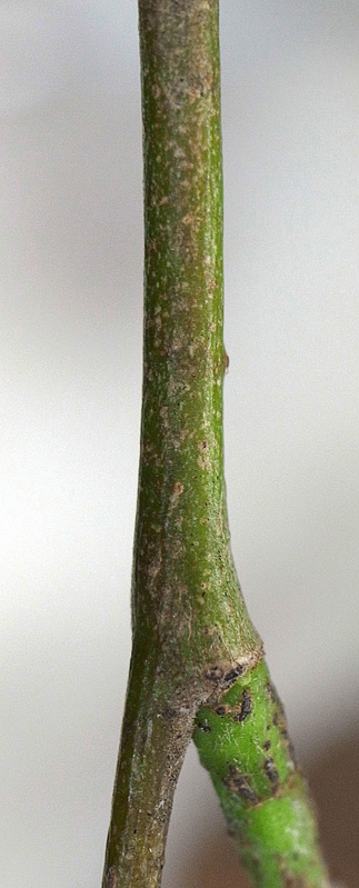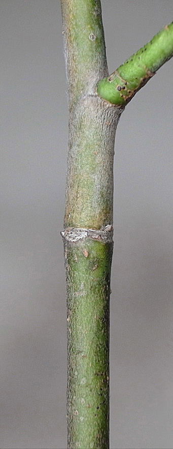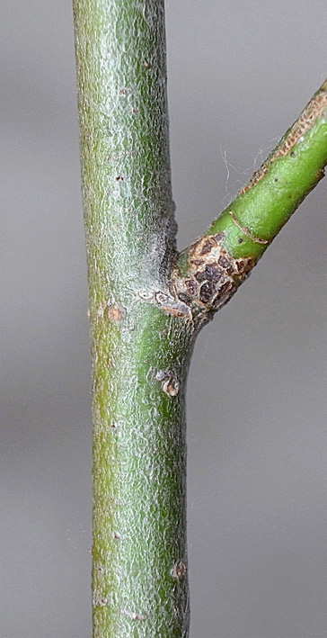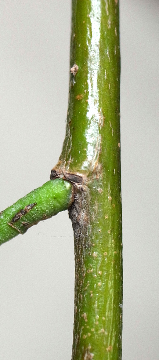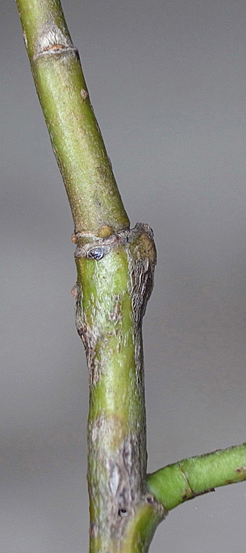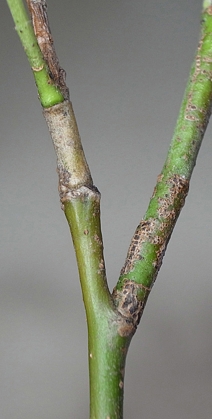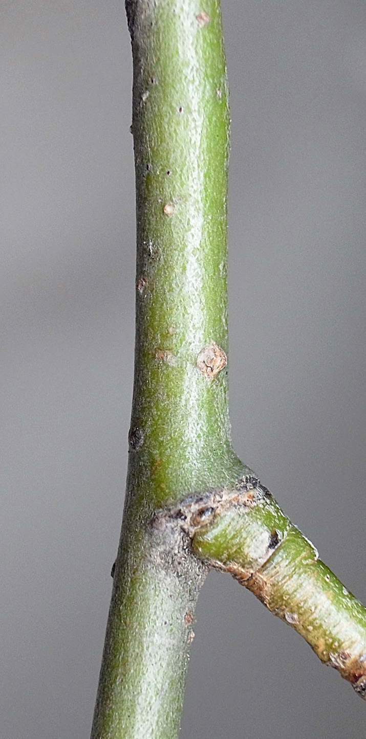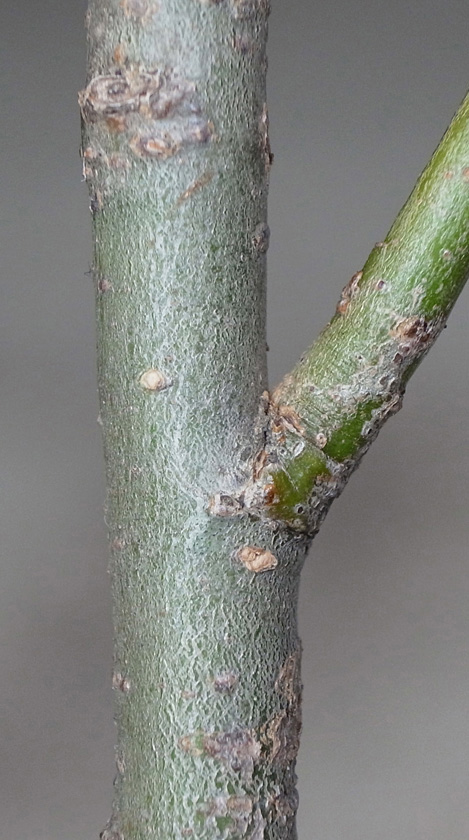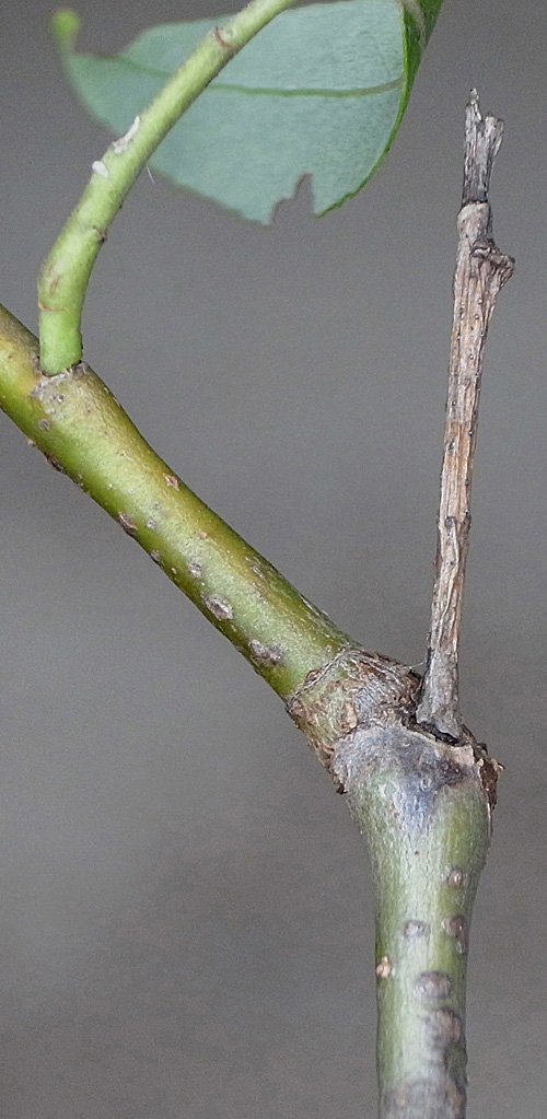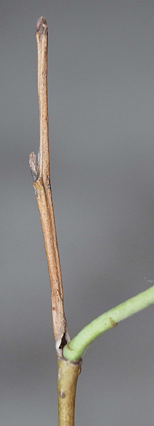 (右に出ている枝は当年枝)