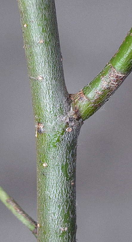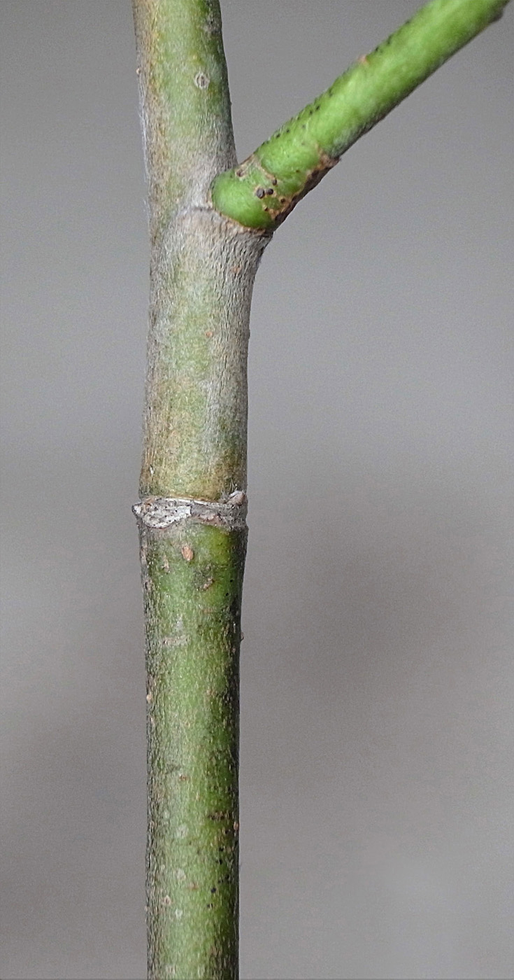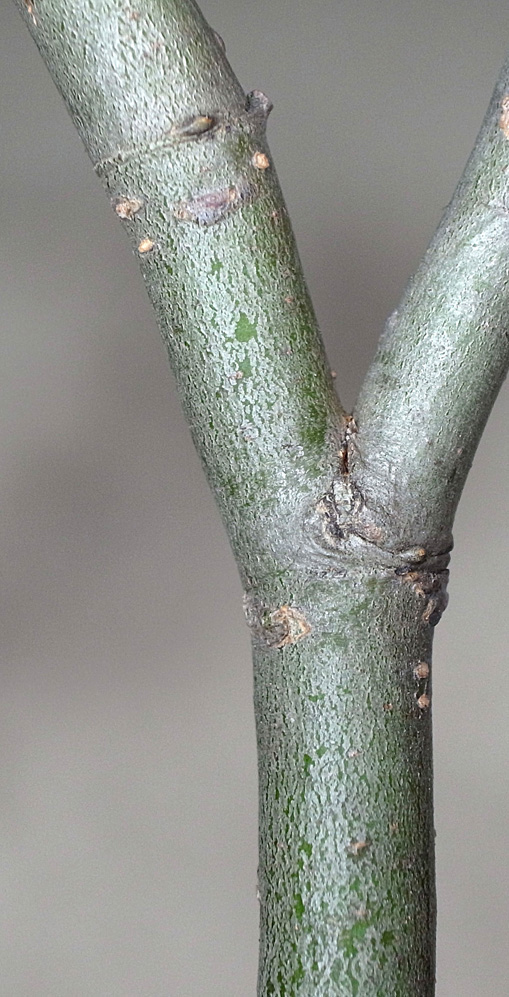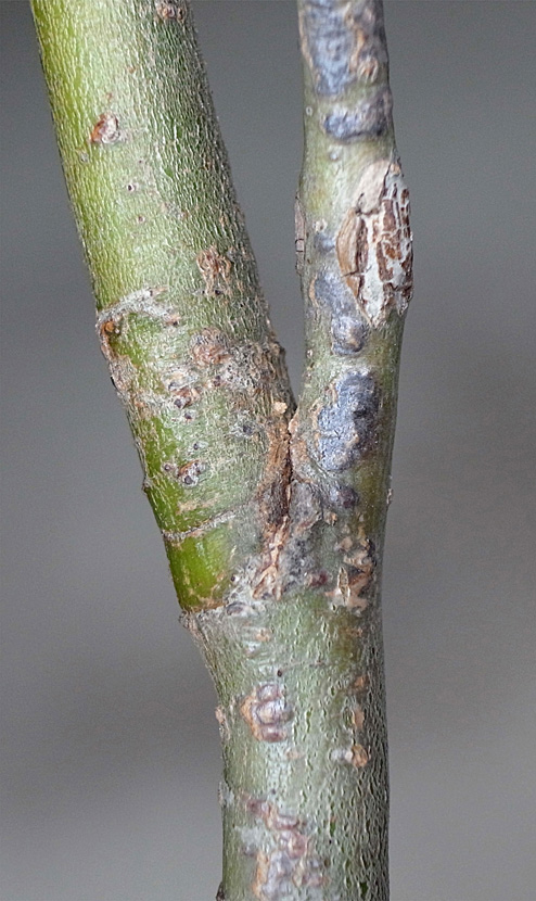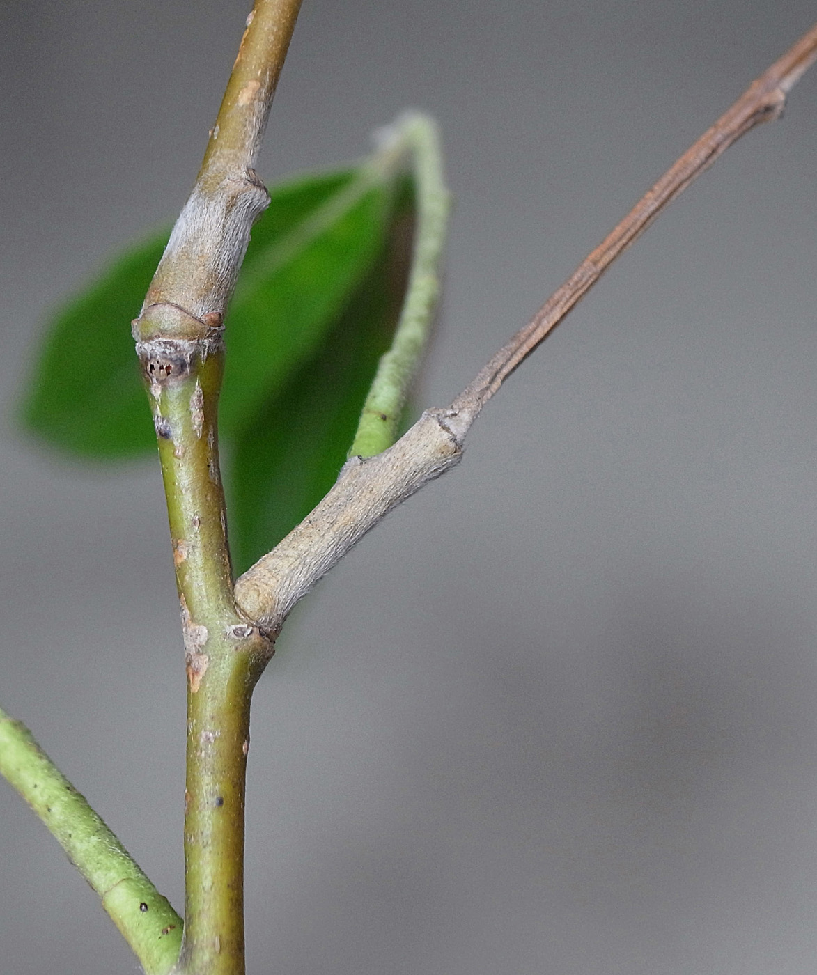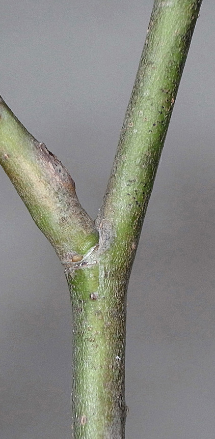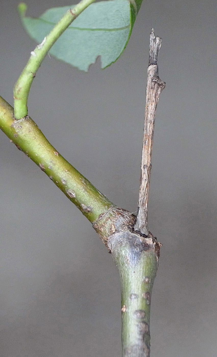 (右に出ている枝は当年枝)