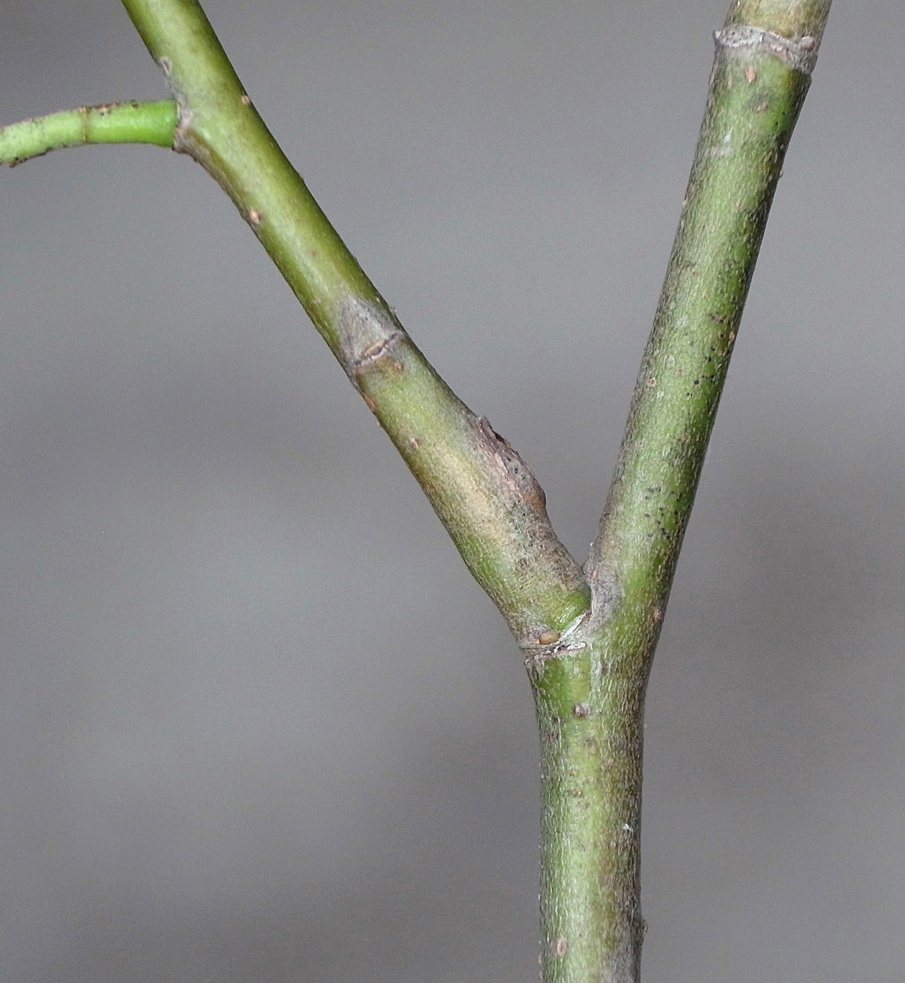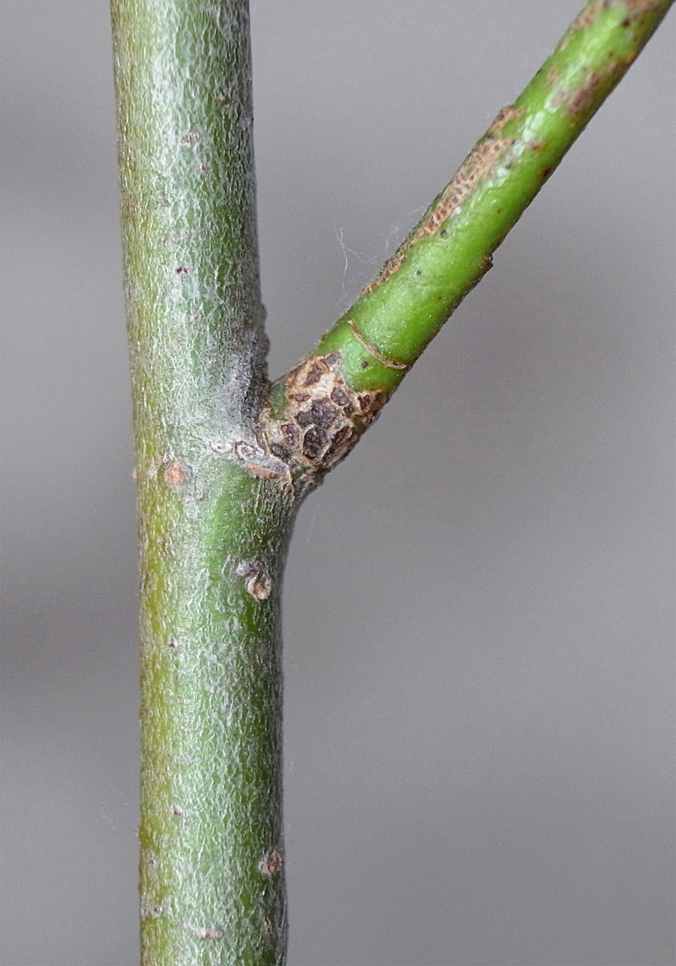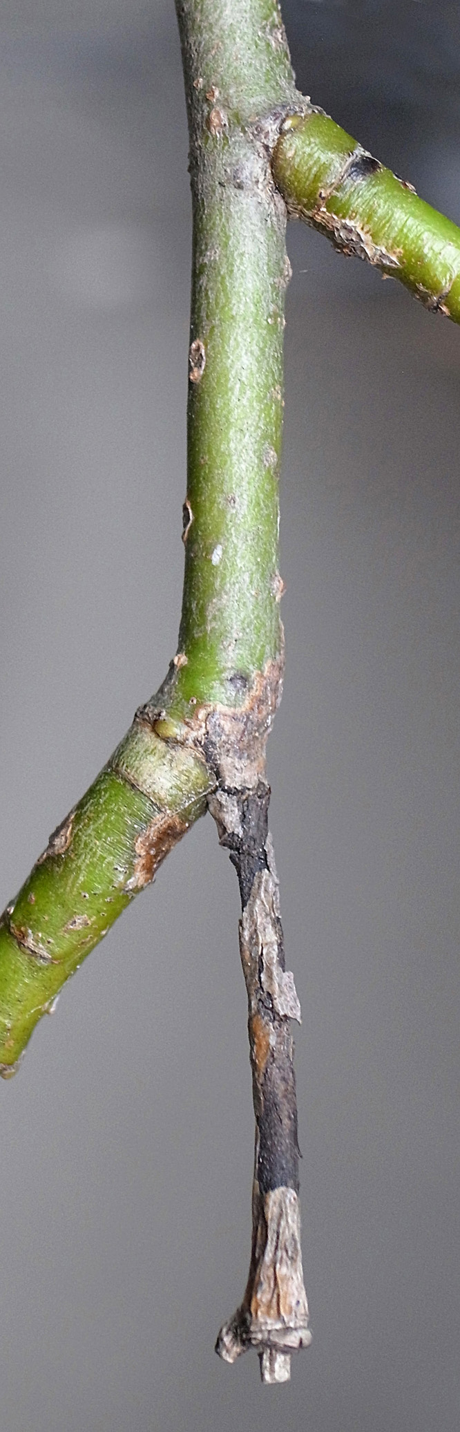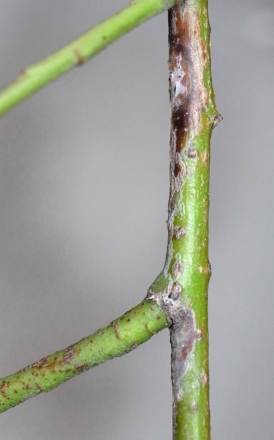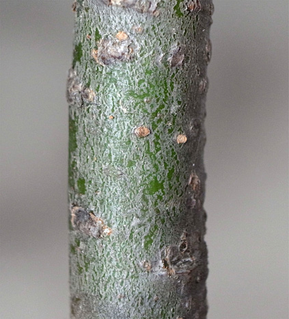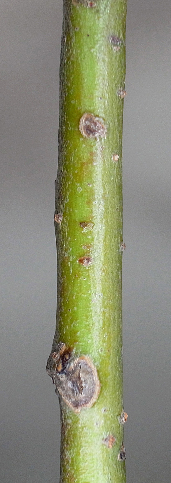 (右に出ている枝は当年枝)