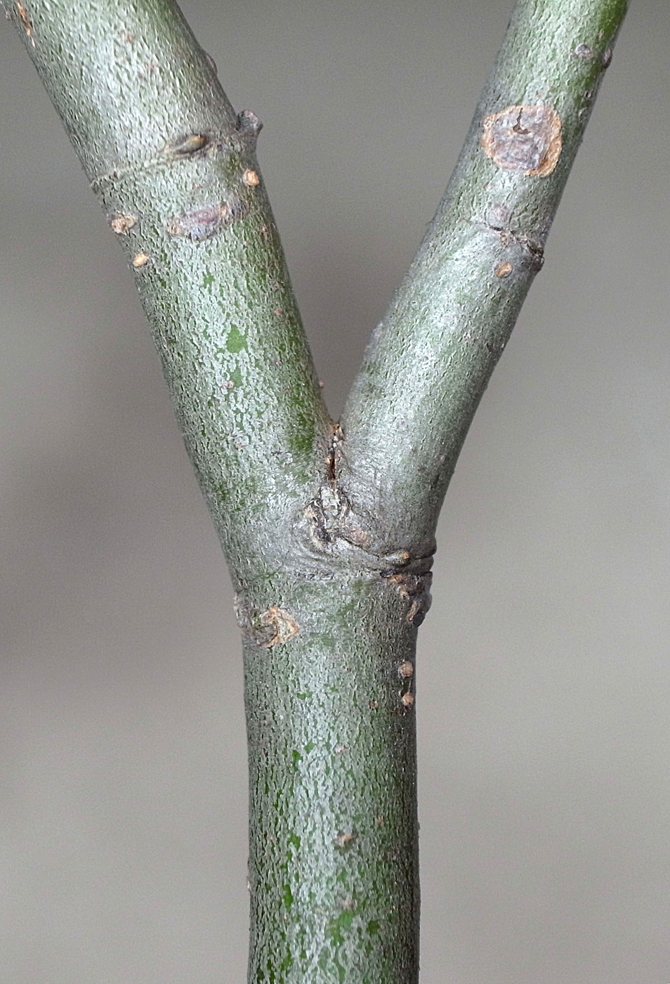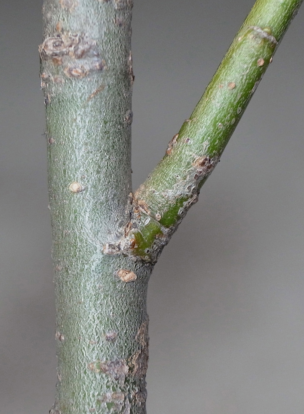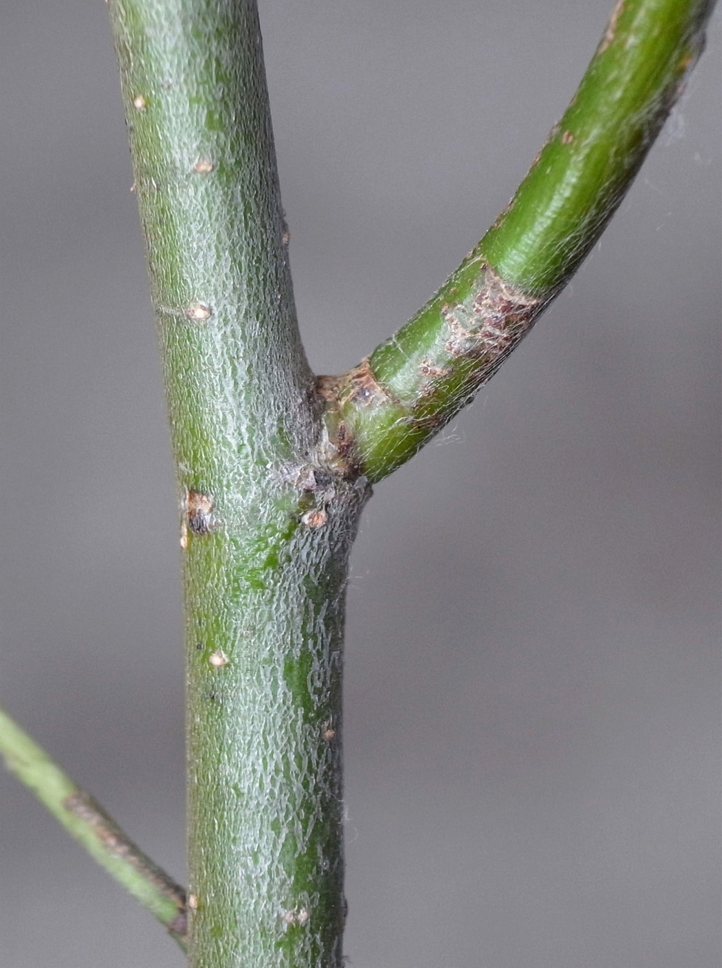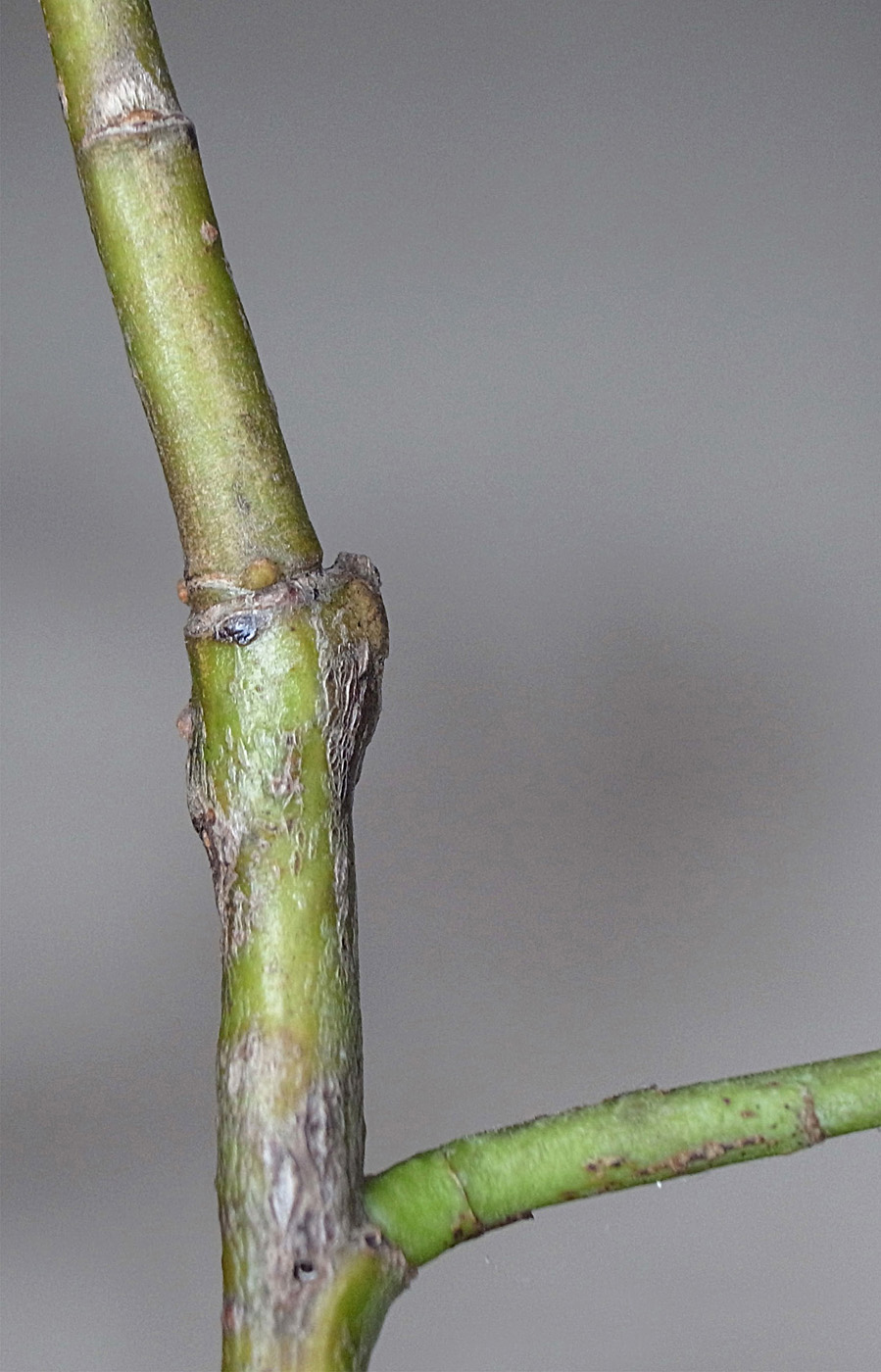 (右に出ている枝は当年枝)