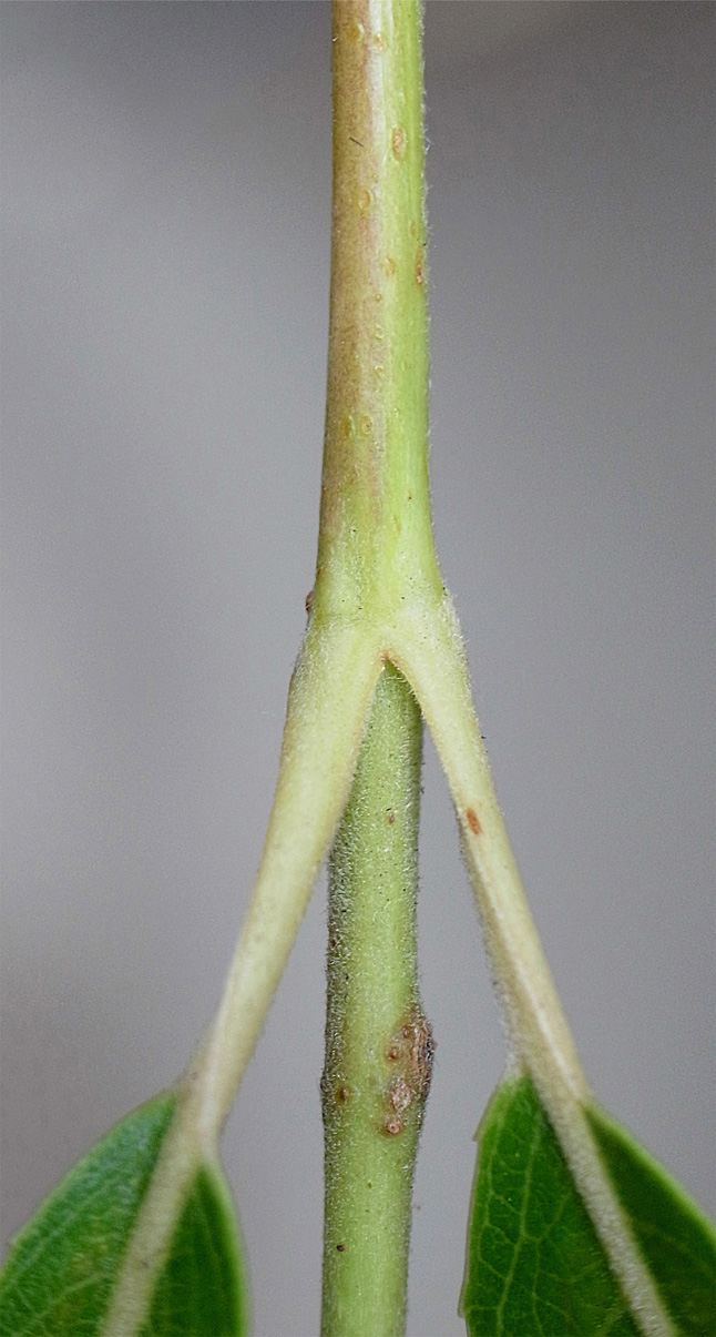 右に出ている枝 (前年枝→当年枝) が下とつながる