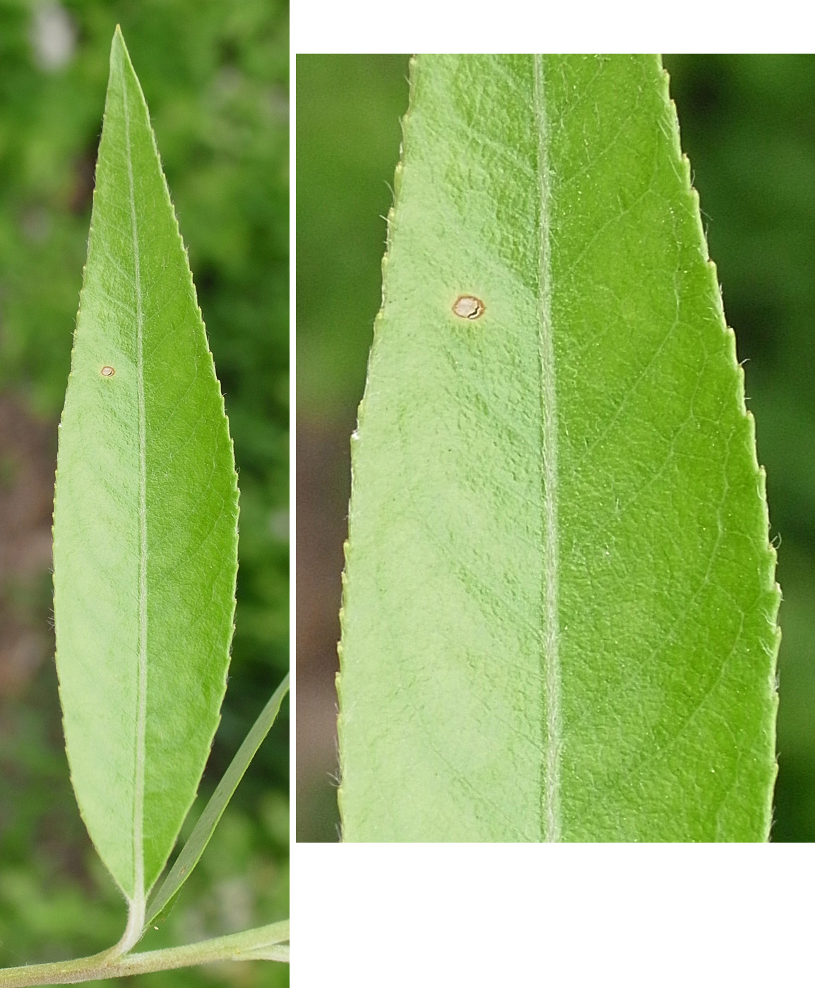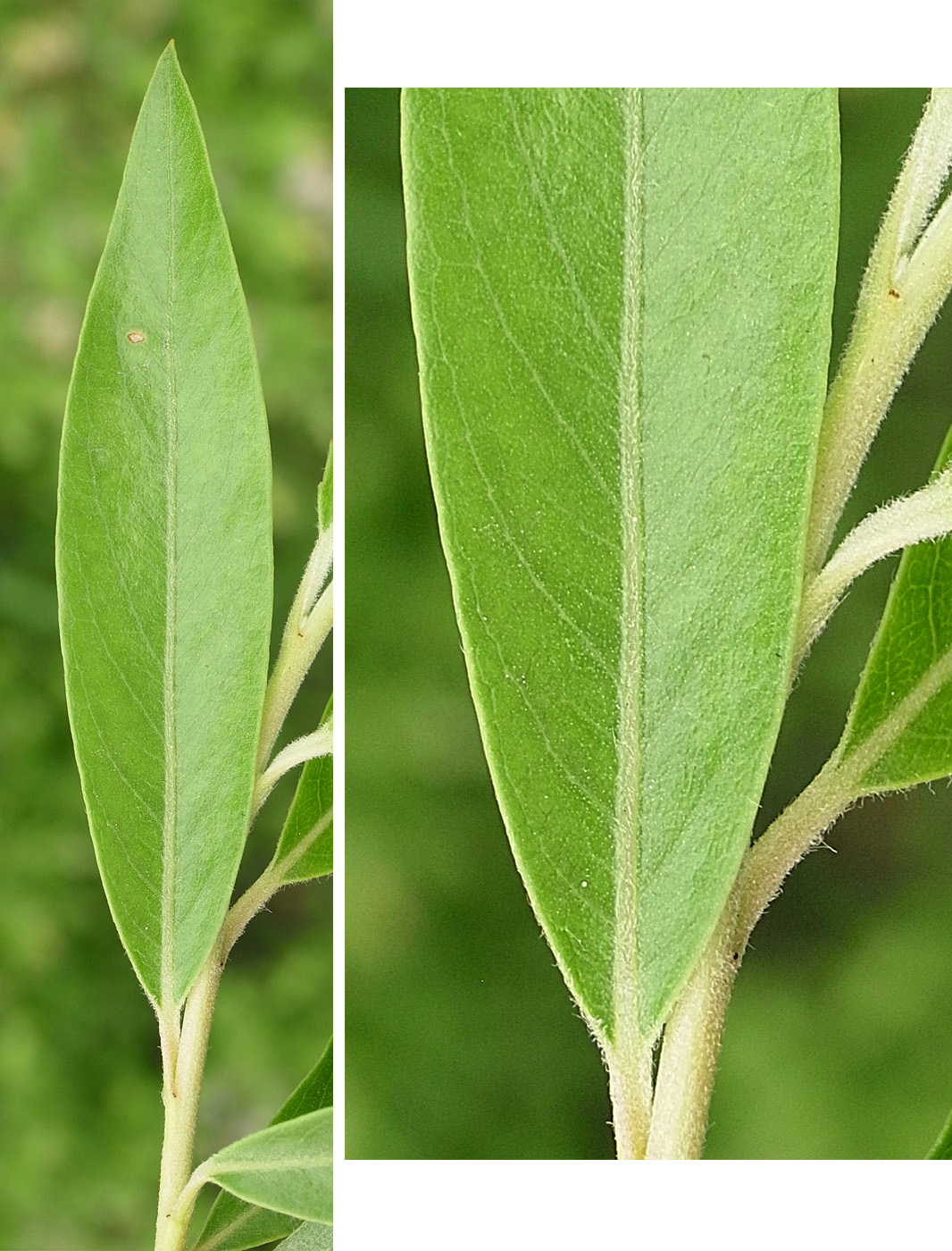 (『樹に咲く花─離弁花〈1〉』(山渓ハンディ図鑑 3,山と渓谷社)では,シロヤナギの葉の裏面は「絹毛が密生」となっている。) |