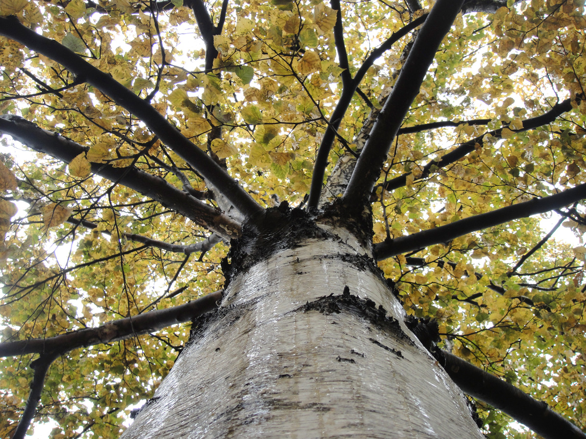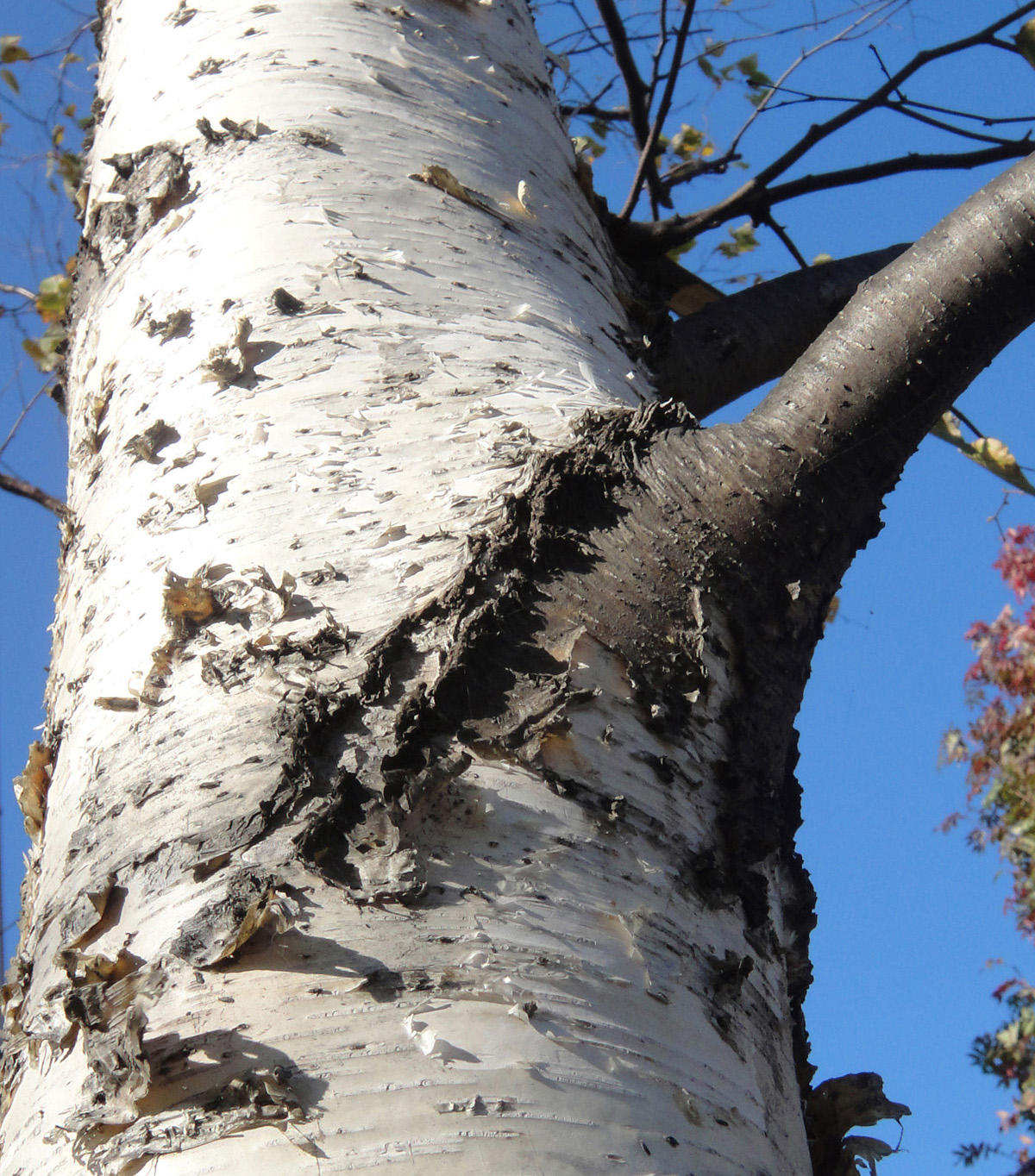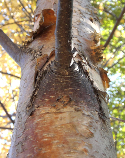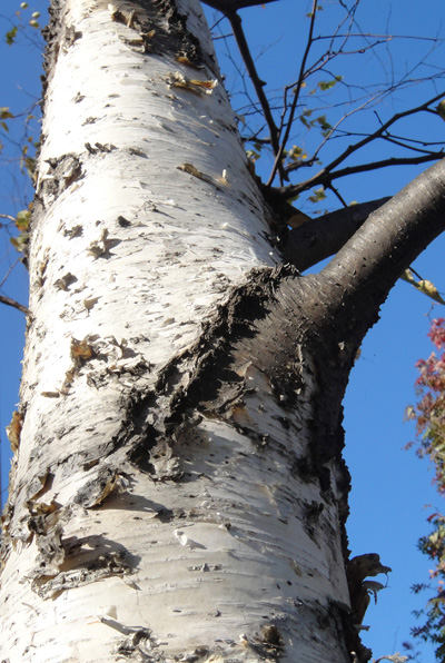 シラカンバの枝は,黒い:
