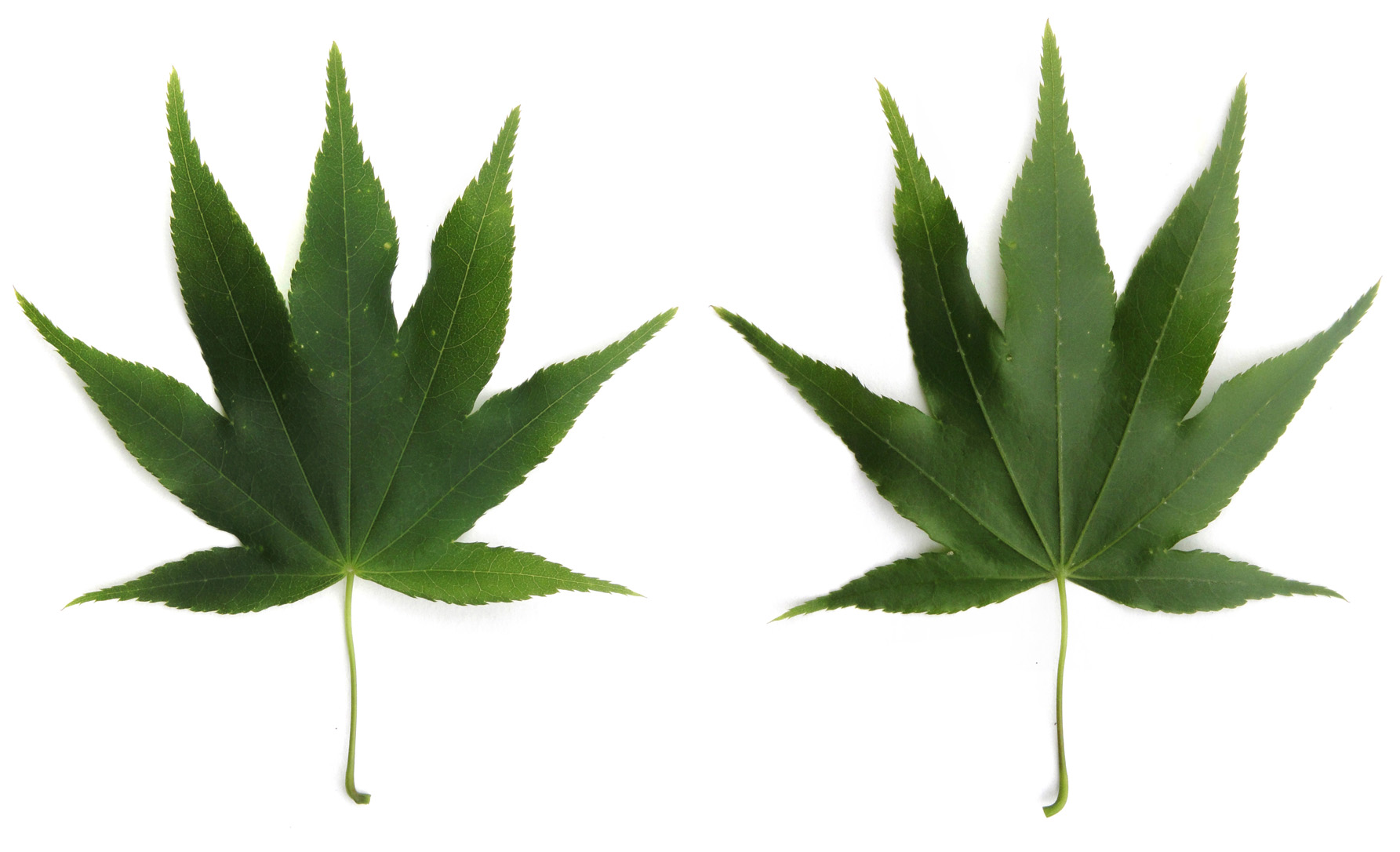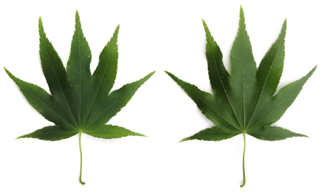 オオモミジの葉とは,裂片の鋸歯の形で見分けられる (?)