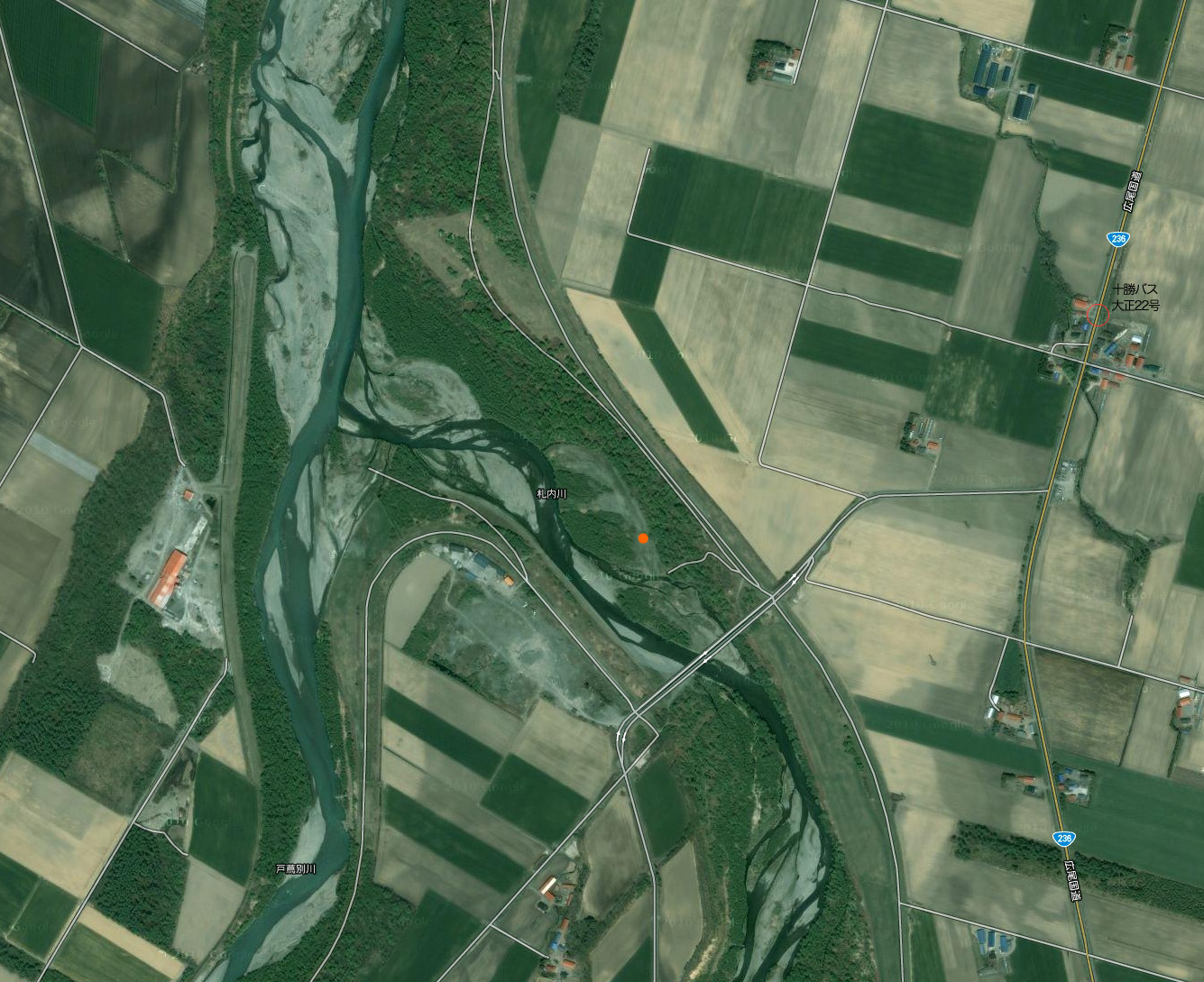 戸蔦別川合流点と大正橋の間