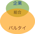 ここでは,<企業-組合>から<企業-組合-パルタイ>を区別して,後者の形を一般的/図式的に押さえておく。 パルタイは,自組織オーガナイズのターゲットに,ある企業を定める。 これを,「自組織オーガナイザーが執行部をとる組合を,その企業の中に組織する」という形で行う。 企業経営者にとってこの構図は,「パルタイによる企業乗っ取り」になる。 なぜなら,企業経営者にとってパルタイはことば/世界を共有できない存在なので,「パルタイに侵入される」は,「企業文化 (=企業そのもの) を変えられる」を含意する。そして,一旦侵入されてからのパルタイ排除も,法的に権利保証された組合を相手にすることになるので,極めて困難になる。 よって,企業経営者は,組合-パルタイが企業に入ってくることに極力警戒する。 組合-パルタイが,企業経営者にとってことば/世界を共有できない存在であり,そして企業文化 (=企業そのもの) を壊すのは,それの二元的世界観(「加虐者-対-被虐者」「搾取する側-対-搾取される側」「富者-対-貧者」「強者-対-弱者」「善-対-悪」等)による。 そして,「企業文化 (=企業そのもの) を壊す」直接のものは,<組合の許しを得て行う>形の経営。 この経営手法により,企業の中のプライオリティがぐちゃぐちゃになる。
