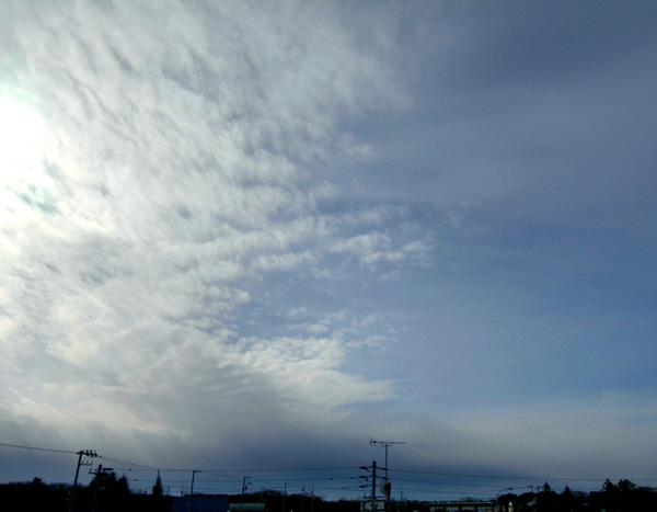 高層雲が広がり,その下の層積雲がちぎれ雲ふうになる