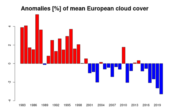 温暖化は,雲量の減少がもとである。