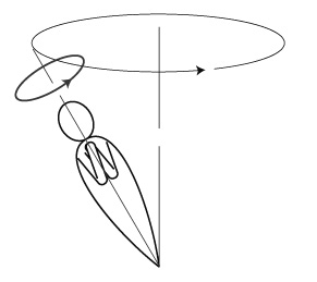 気象学が「角運動量保存」を説くなかには,フィギュアスケートのスピンの「伸ばした腕を縮めると回転速度が増す」を「角運動量保存」の例にしたりするものもある。