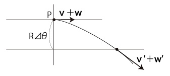 \( d\theta / dt \) の方は,時点ごとに,そのときの移動速度 \( {\pmb v} \) (向きと大きさ) で決まる。