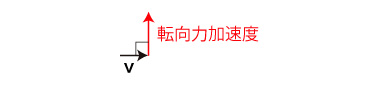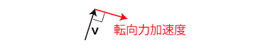 この加速度は移動方向と直角であり,転向力加速度である。