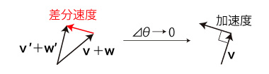 移動による回転速度の変化は,つぎの加速度になる: