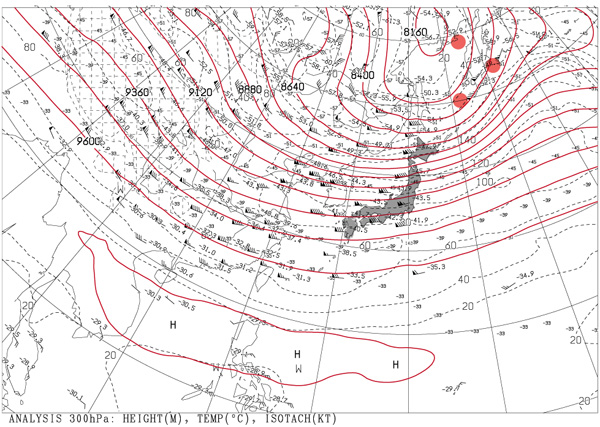 (赤丸は,地上の低気圧の位置)
