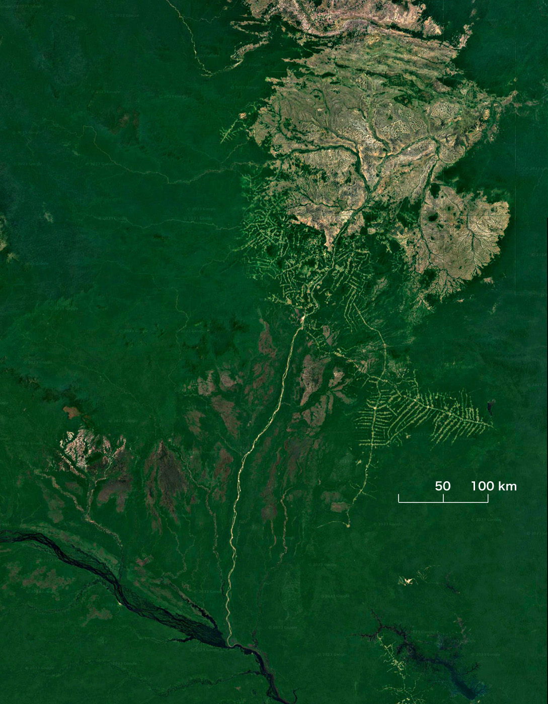 横方向に流れている茶色い川が,アマゾン川。