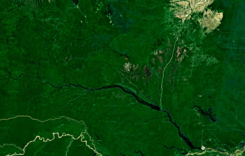 そしてこのときは,北の<地図で茶色の地域>から ネグロ川へと流れてくる ブランコ Branco 川 (「白い川」) も,考えに入れる必要がある。