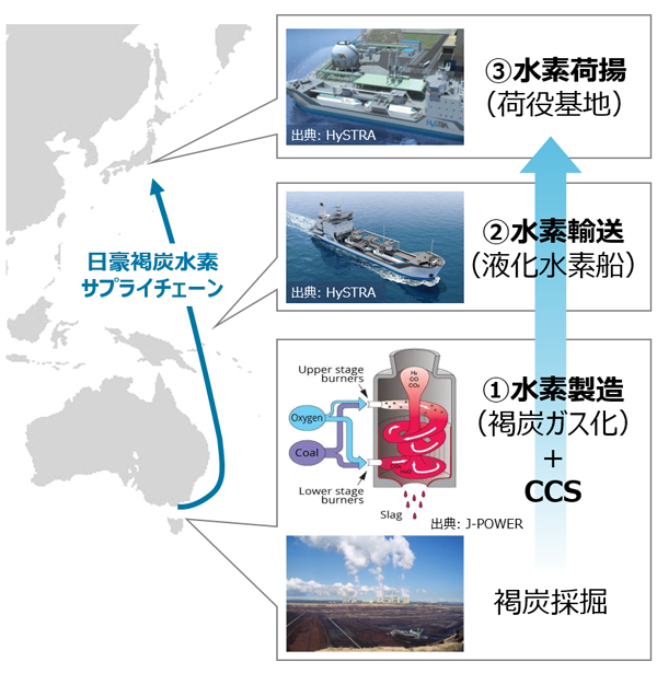 「水素輸送 (液化水素船)」も,構想・研究の段階である。