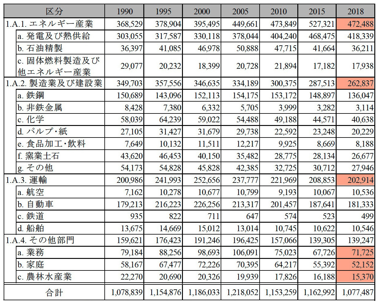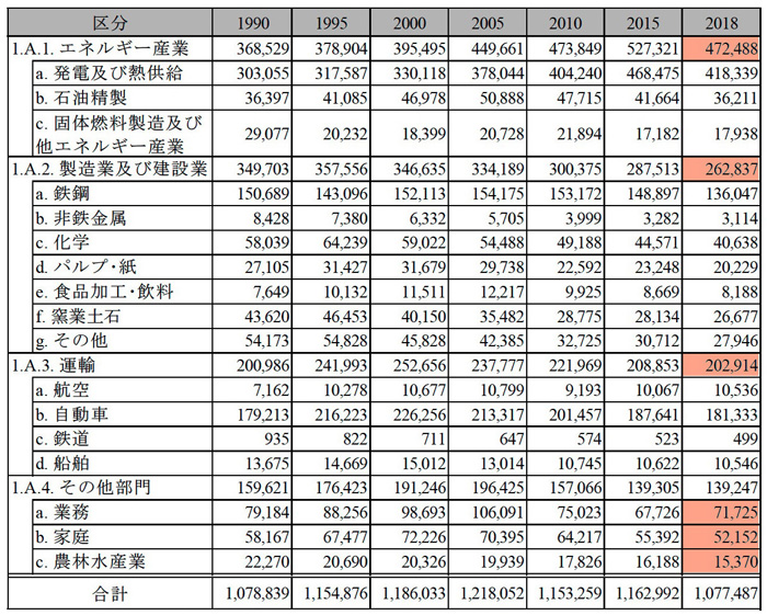 『インベントリ報告書 2020』表2-1より