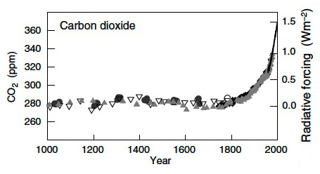 これにより大気中の CO2 濃度が,同じふうに上昇する。