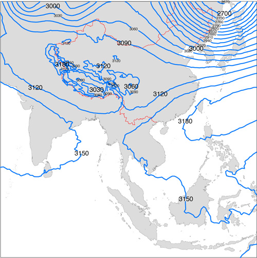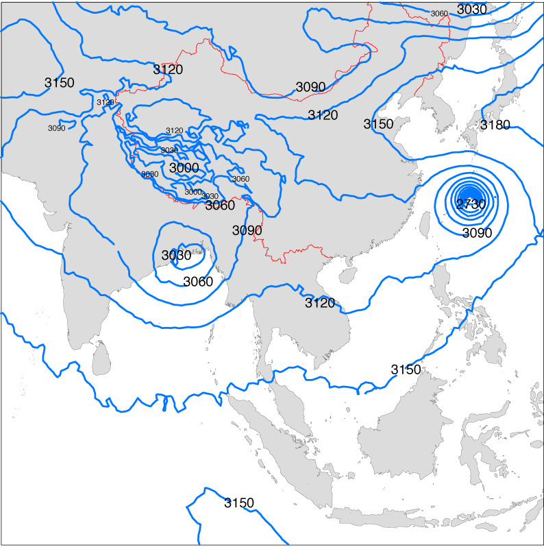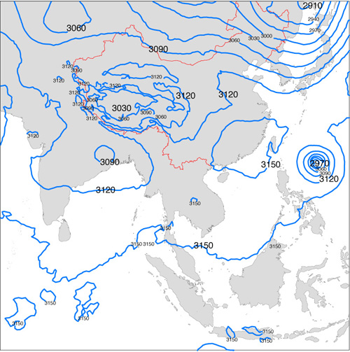 等高度線天気図は,Wyoming Weather Web (University of Wyoming) から引用・編集 |