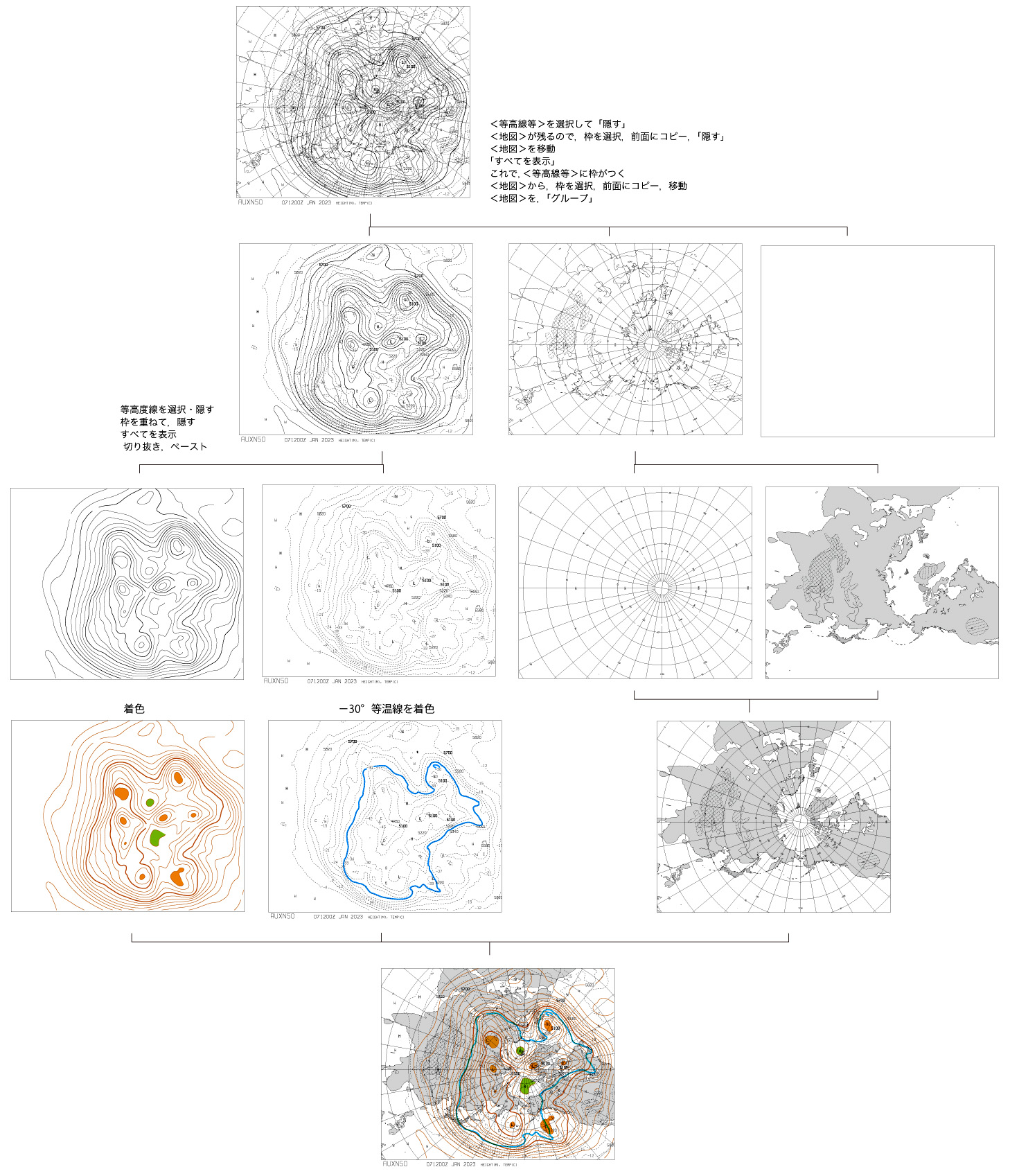 Up AUXN 500hPa 天気図の編集 作成: 2023-01-08