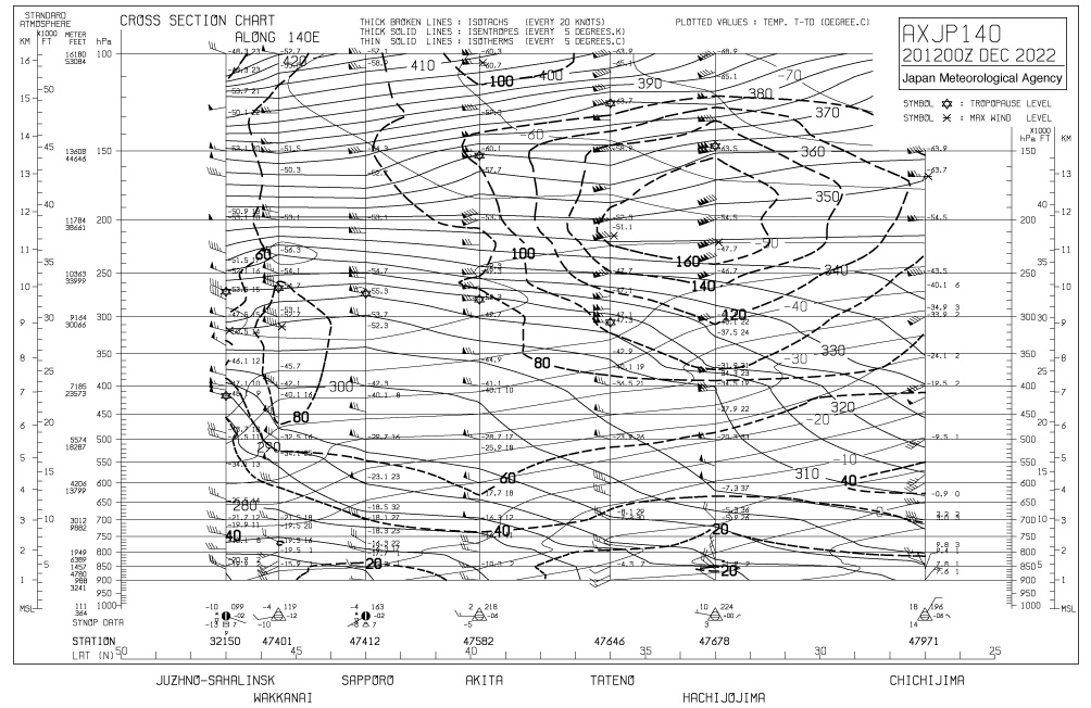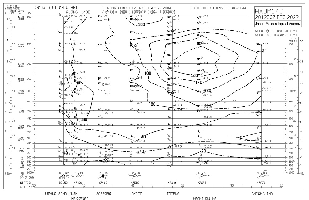 AXJP 東経140° 天気図 (AXJP130/140 上図) の内容