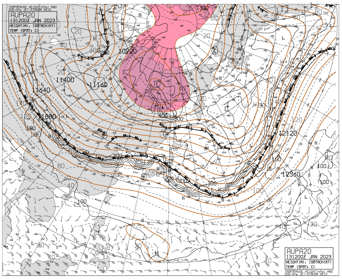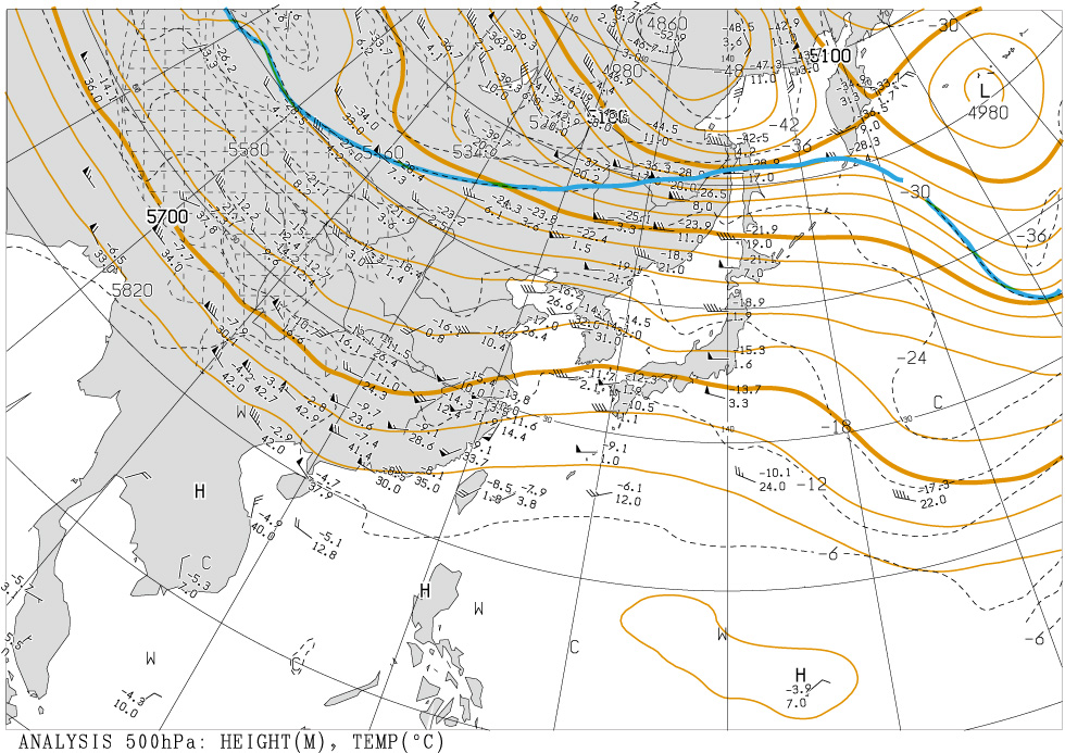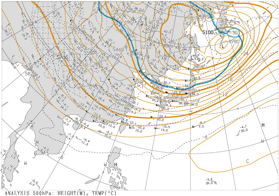 これは,大気のどのような構造の現象なのか? 以下,高層天気図で,これを見ていく。
