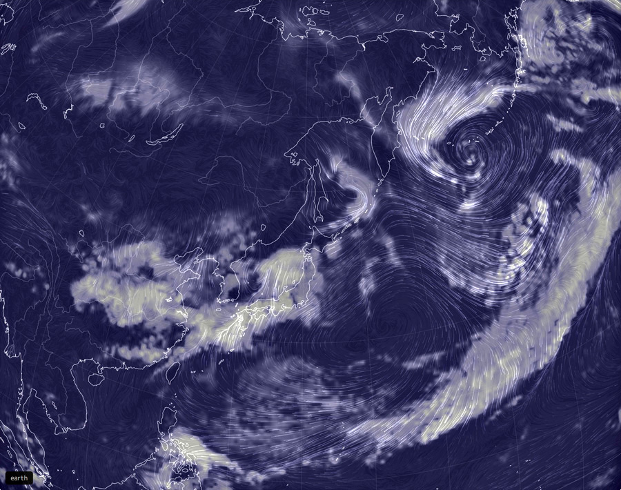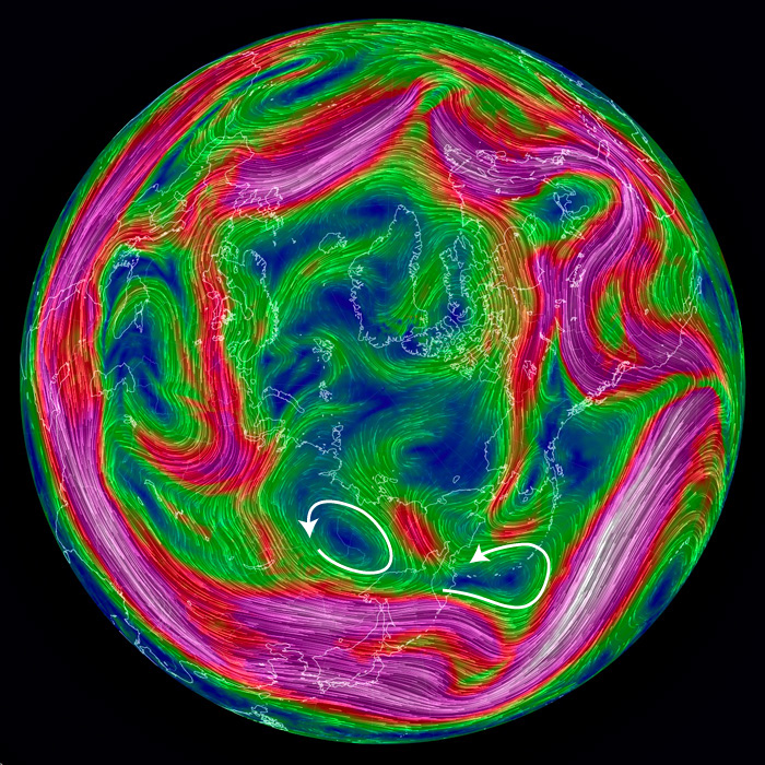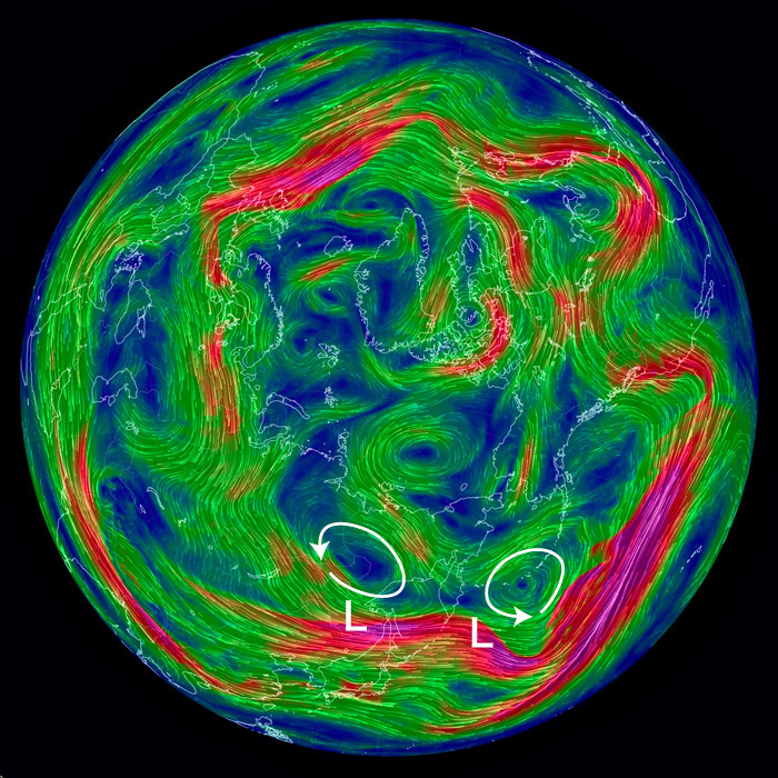 「左のL」が存在感を増している。 ○ earth.nullschool.net 250hPa |