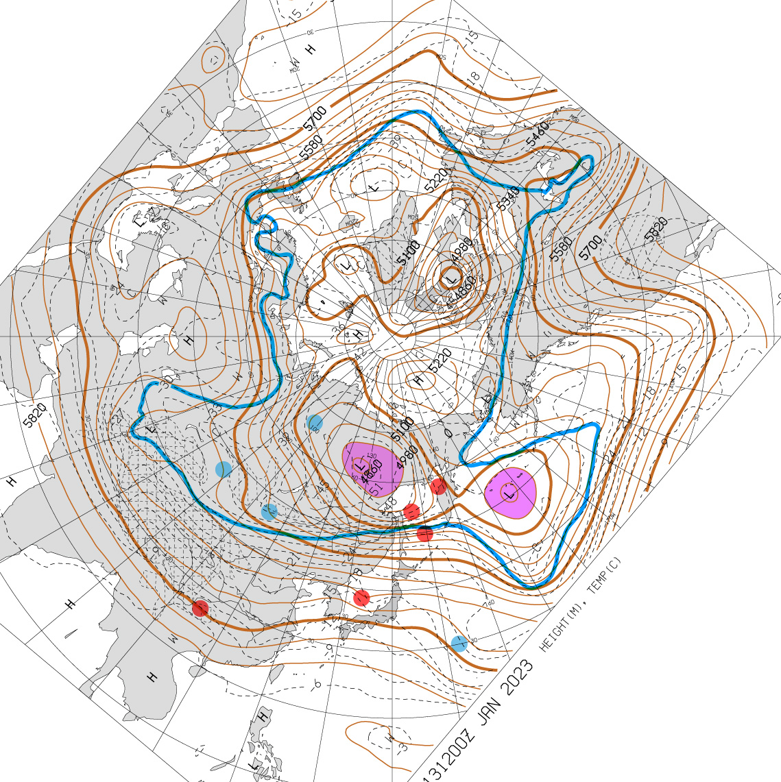 大気の構造は,この場合 AUXN 500hPa 天気図が見やすい: |