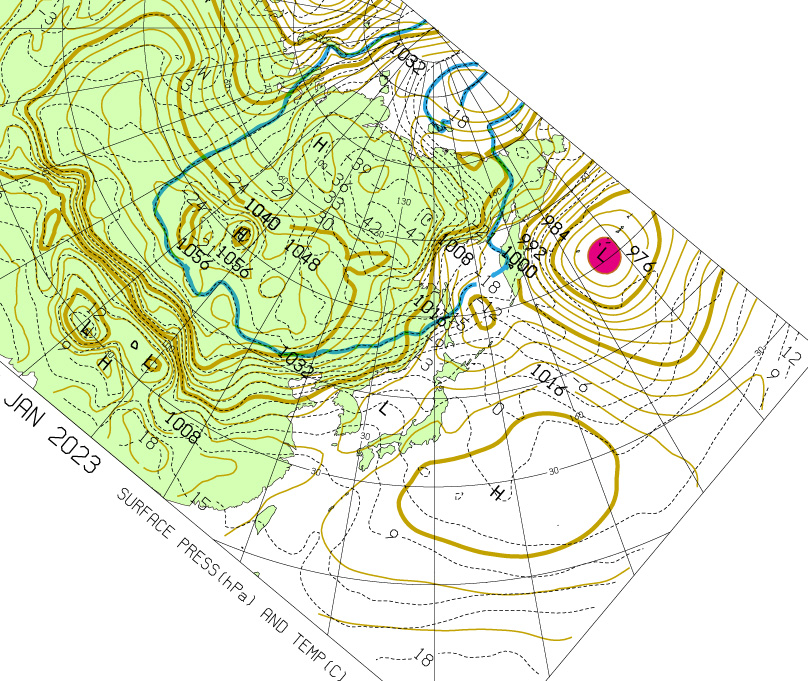 | 「左のL」には,樺太の北の気圧の急斜面が対応しているように見える: |