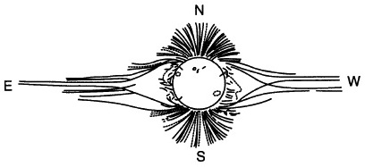 1954年6月30日の日食時に、太陽からまっすぐに伸びるコロナの磁場が観測されています。