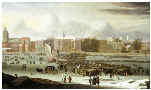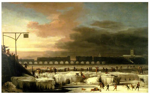 つぎの風景は,イギリスの冬のテムズ川も<氷結か解氷か>に敏感な場所であることを示している:
