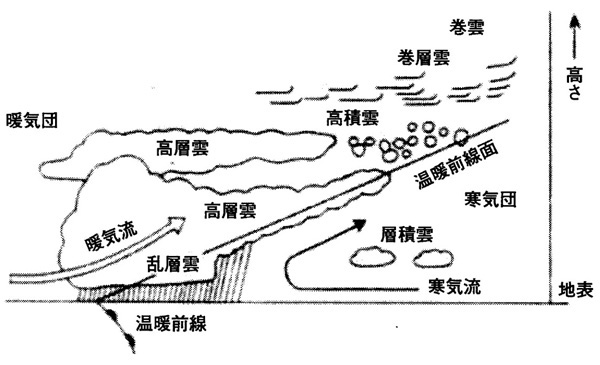 隙間雲 不透明雲 二重雲 波状雲 放射状雲 蜂の巣状雲 |