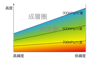 圧力の傾きが温度の傾きに表現されるので,気象学はさらに「温度」のことばによる「偏西風=地衡風」の表現に向かう。